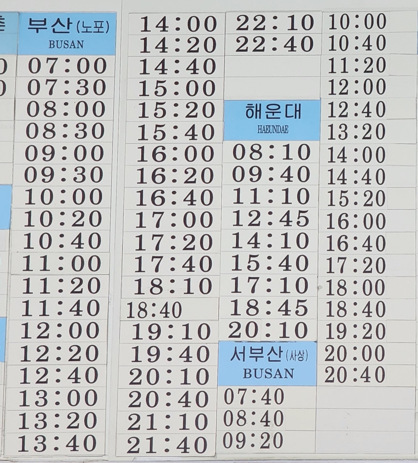 경주 출발 부산 노포, 해우대, 서부산 사상 방면.