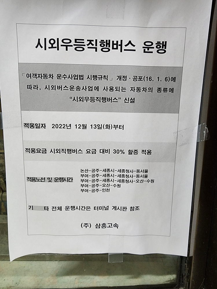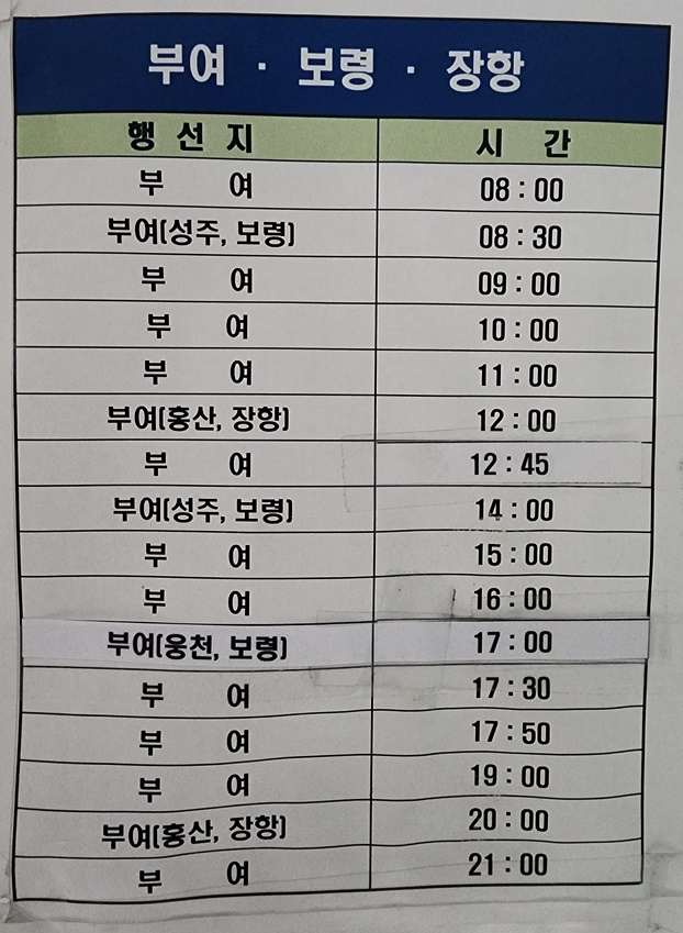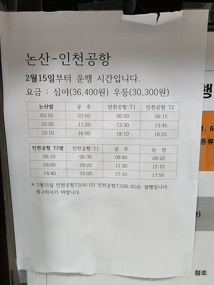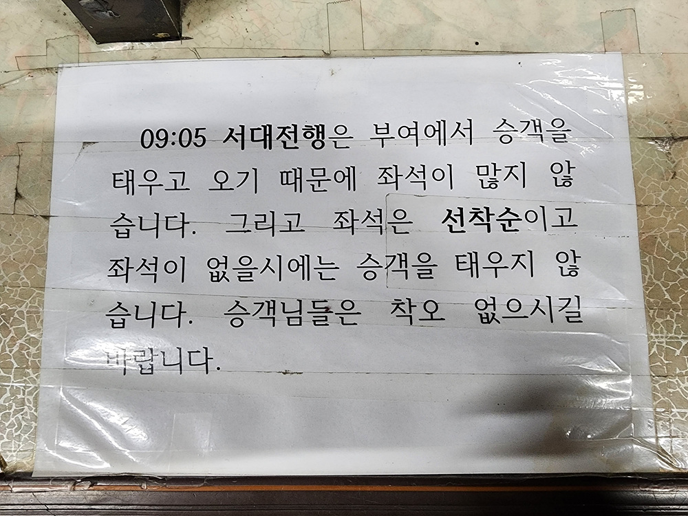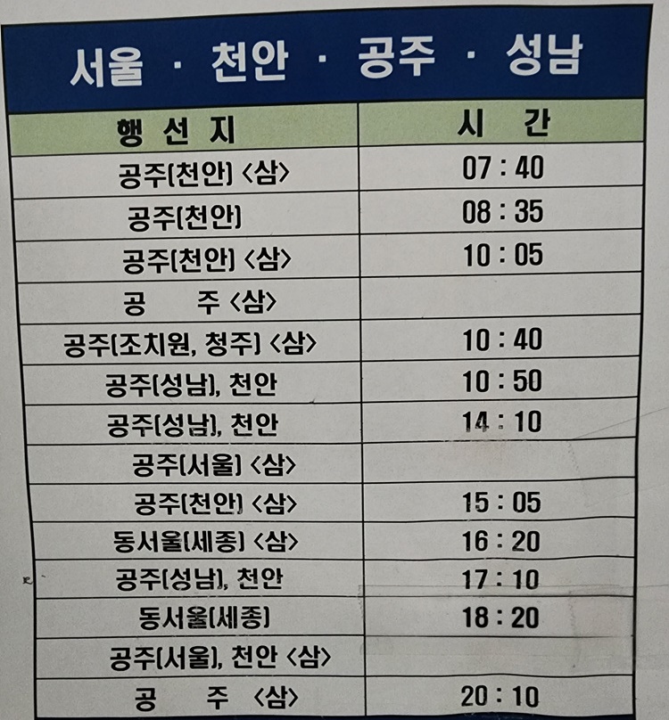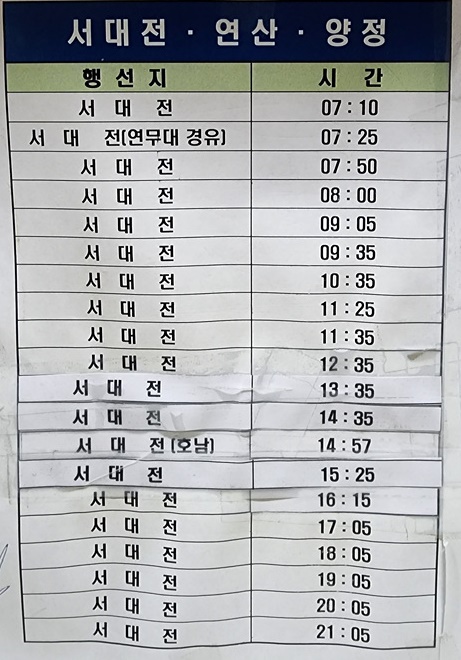 논산 출발 서울, 천안, 공주, 성남 방면.