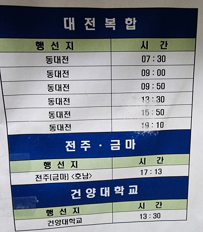 논산 출발 대전복합,전주, 금마, 건양대학교 방면.