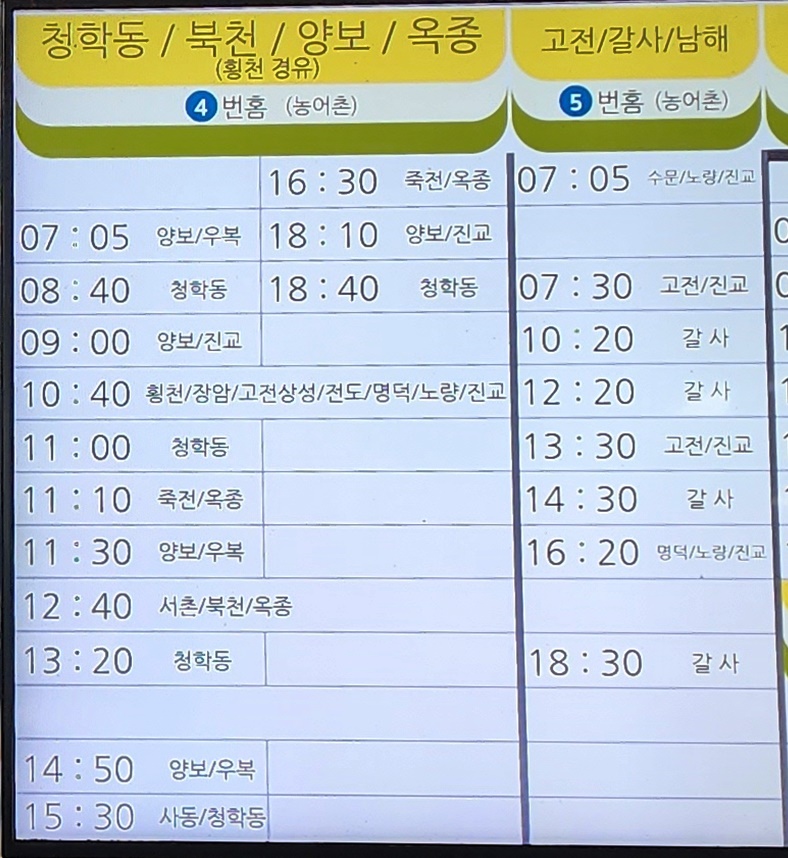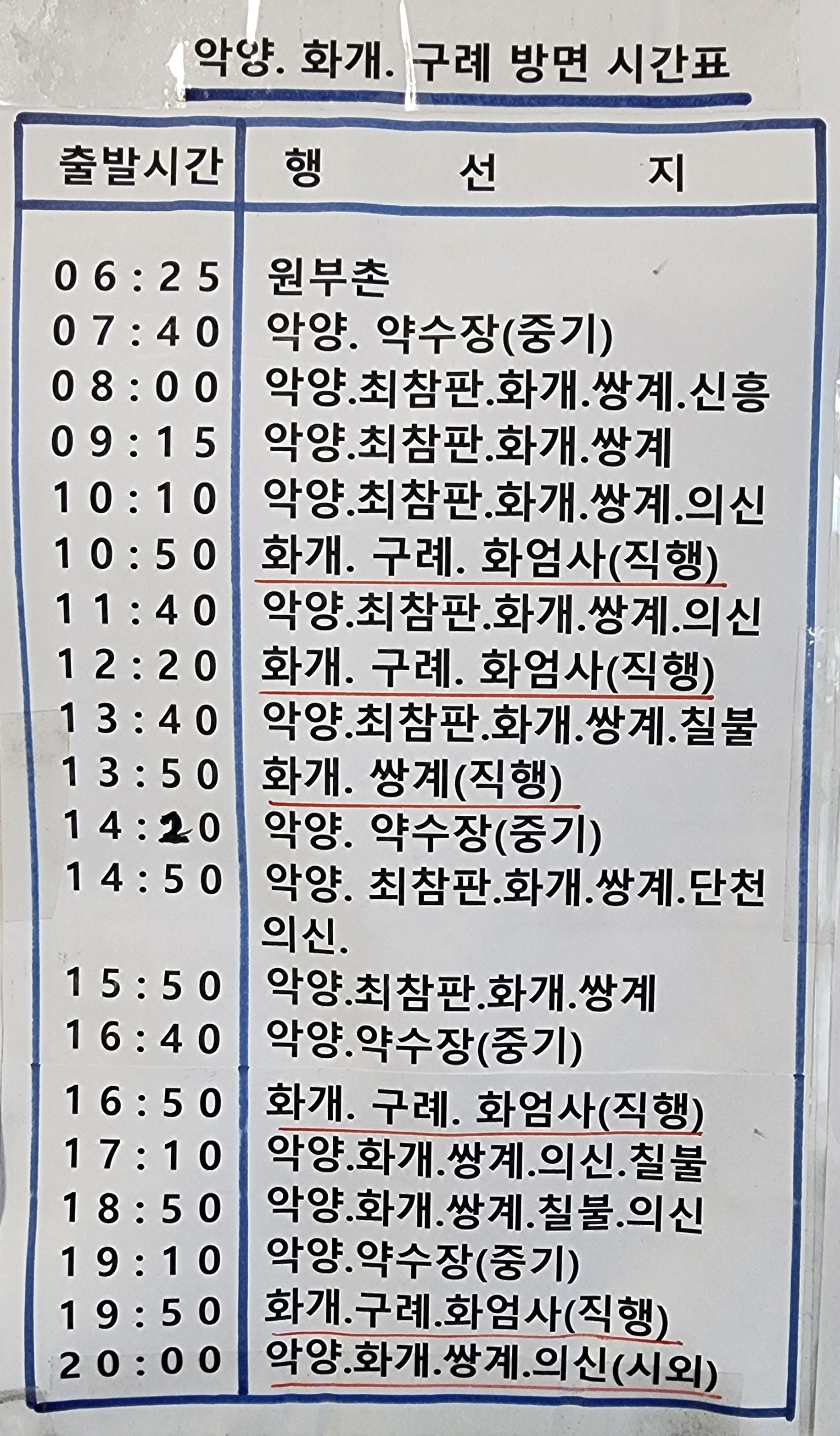 하동 출발 청학동 북천, 양보, 옥종, 고전, 갈사, 남해 방면.