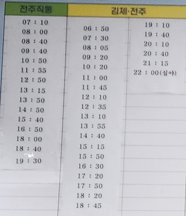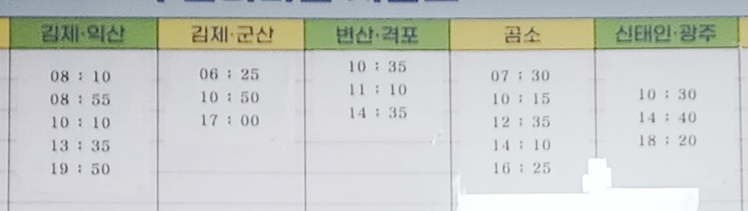 부안 출발 김제. 익산, 군산, 변산, 격포, 곰소, 신태인, 광주 방면.