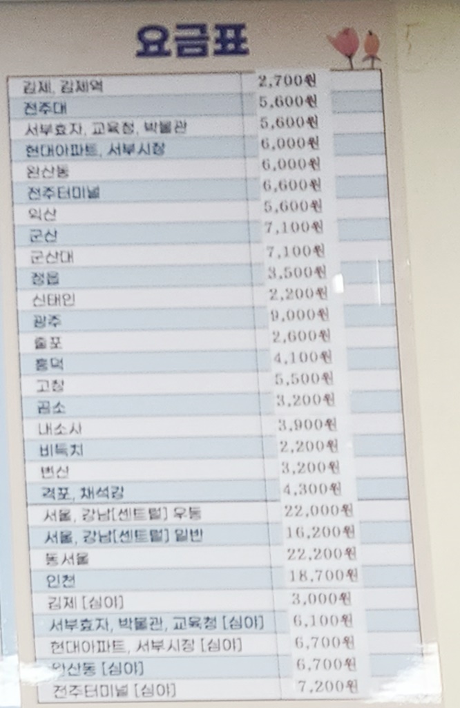 부안 출발 김제. 익산, 군산, 변산, 격포, 곰소, 신태인, 광주 방면.