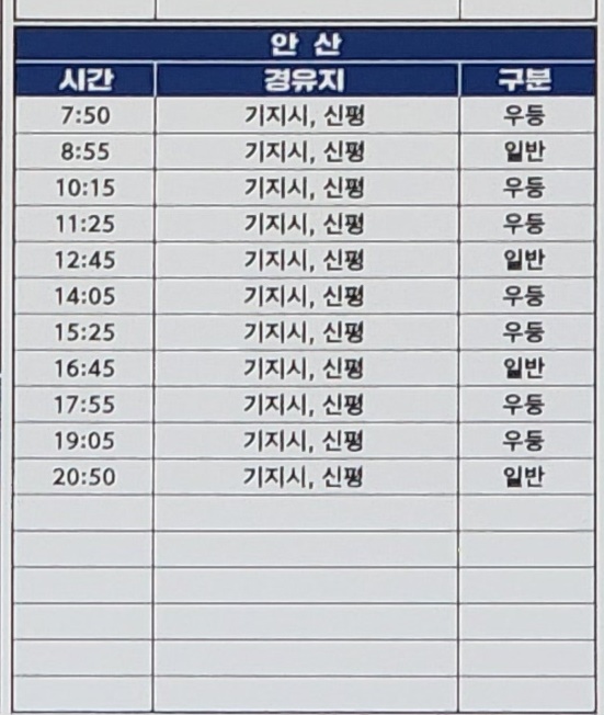 당친 출발 기지시, 신평, 삽교천 인천 방면.