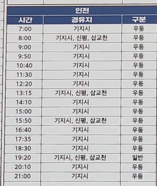 당친 출발 기지시, 신평, 삽교천 인천 방면.