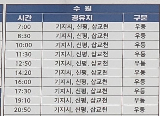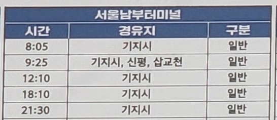 당진 출발 기지시, 신평, 삽교천, 서울 남부터미널 방면,
