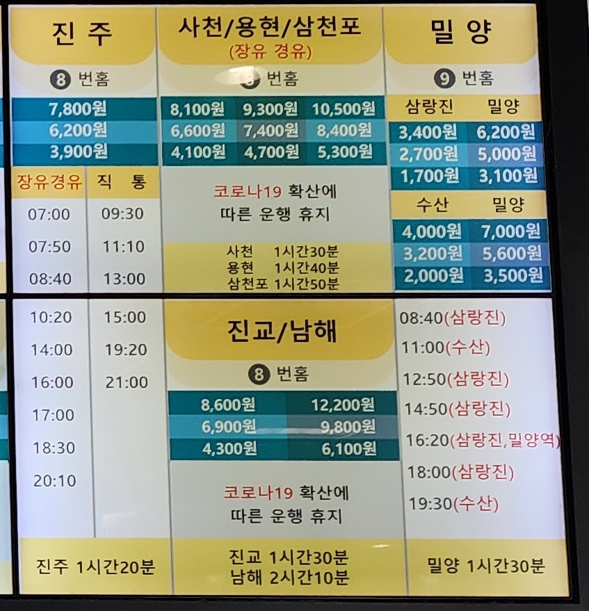 김해시외버스터미널 시간표