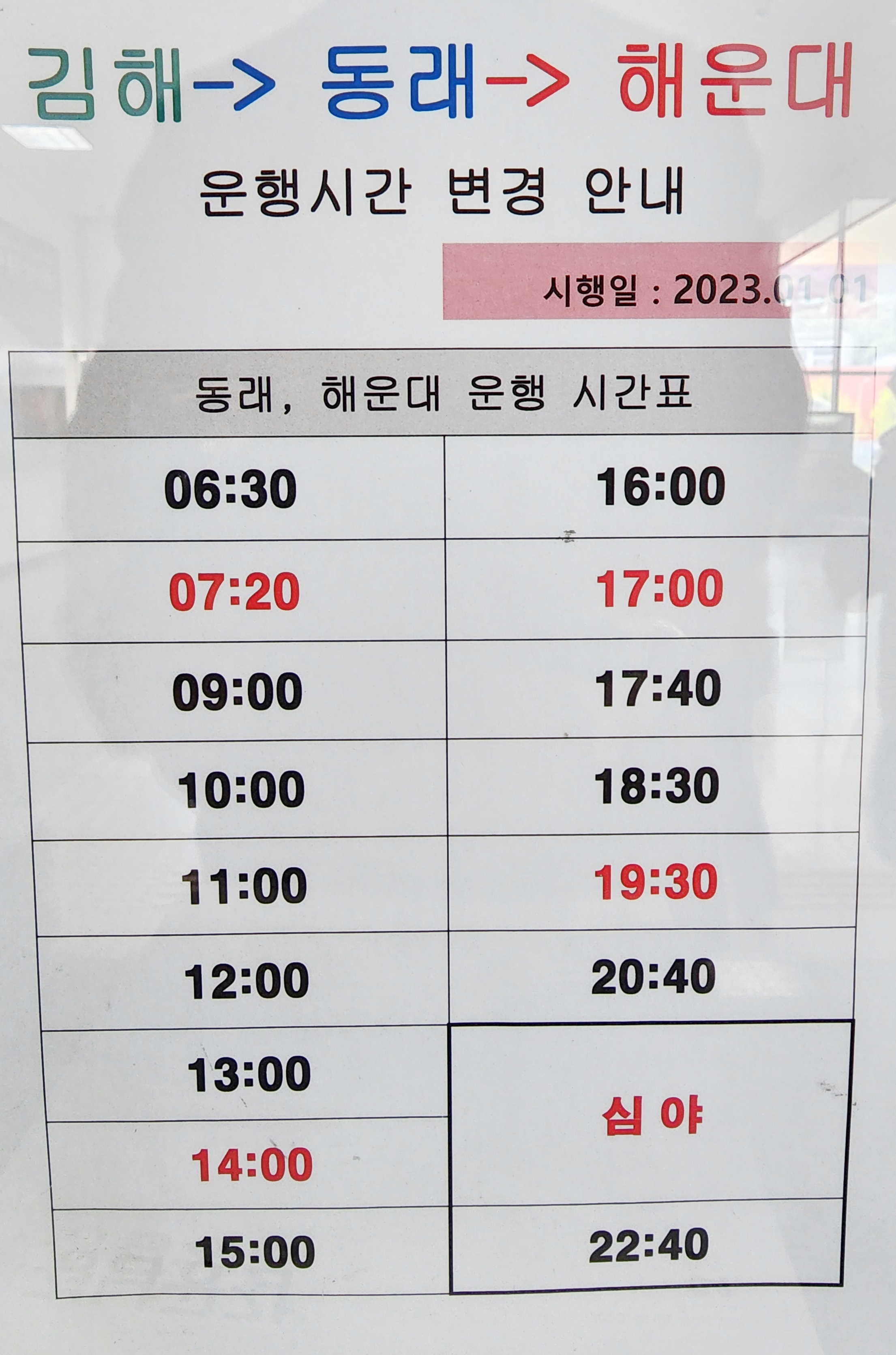 김해 출발 동래, 해운대 방면.
