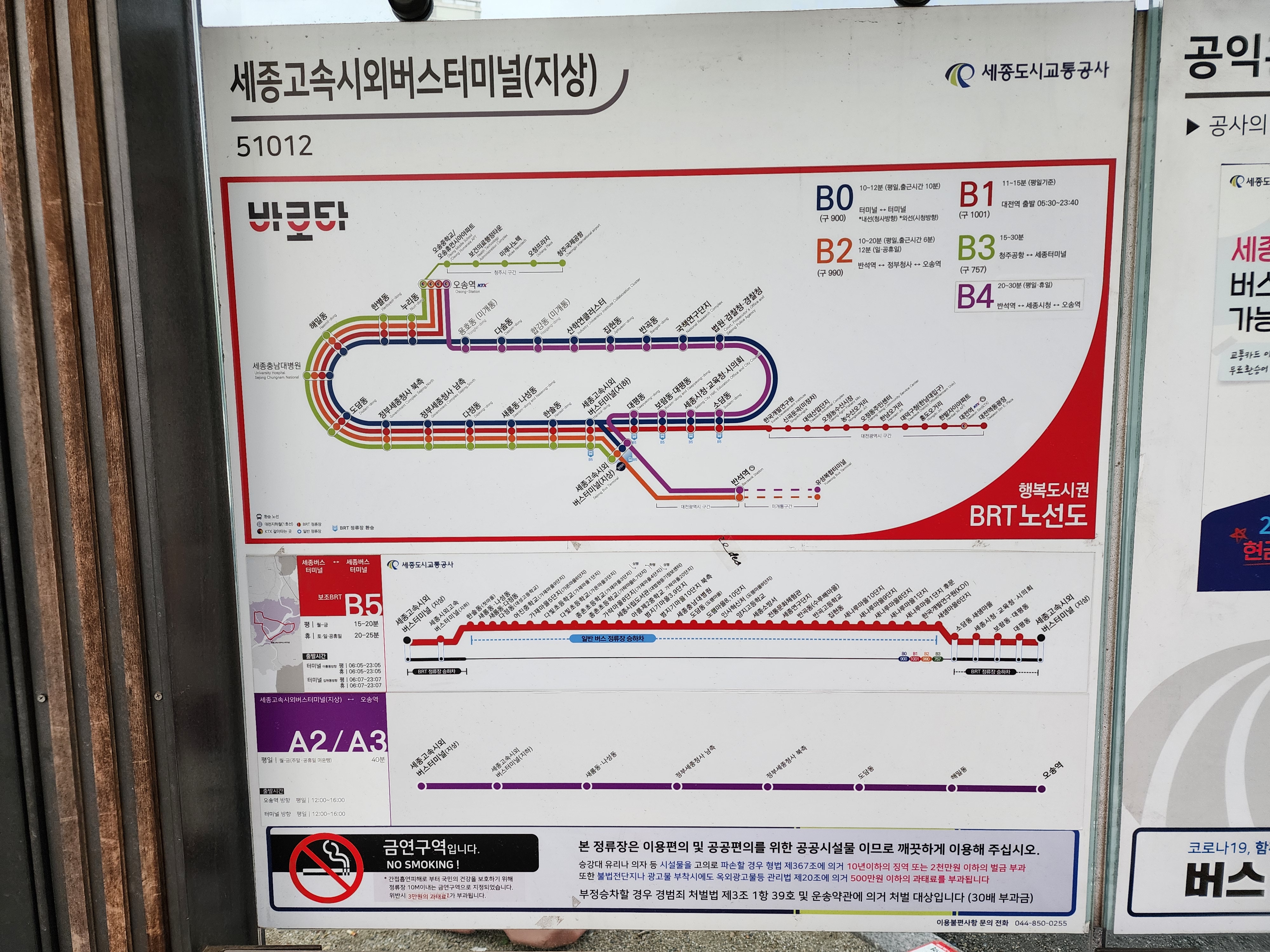 세종고속시외버스터미널 정류장 버스탑승 안내도
