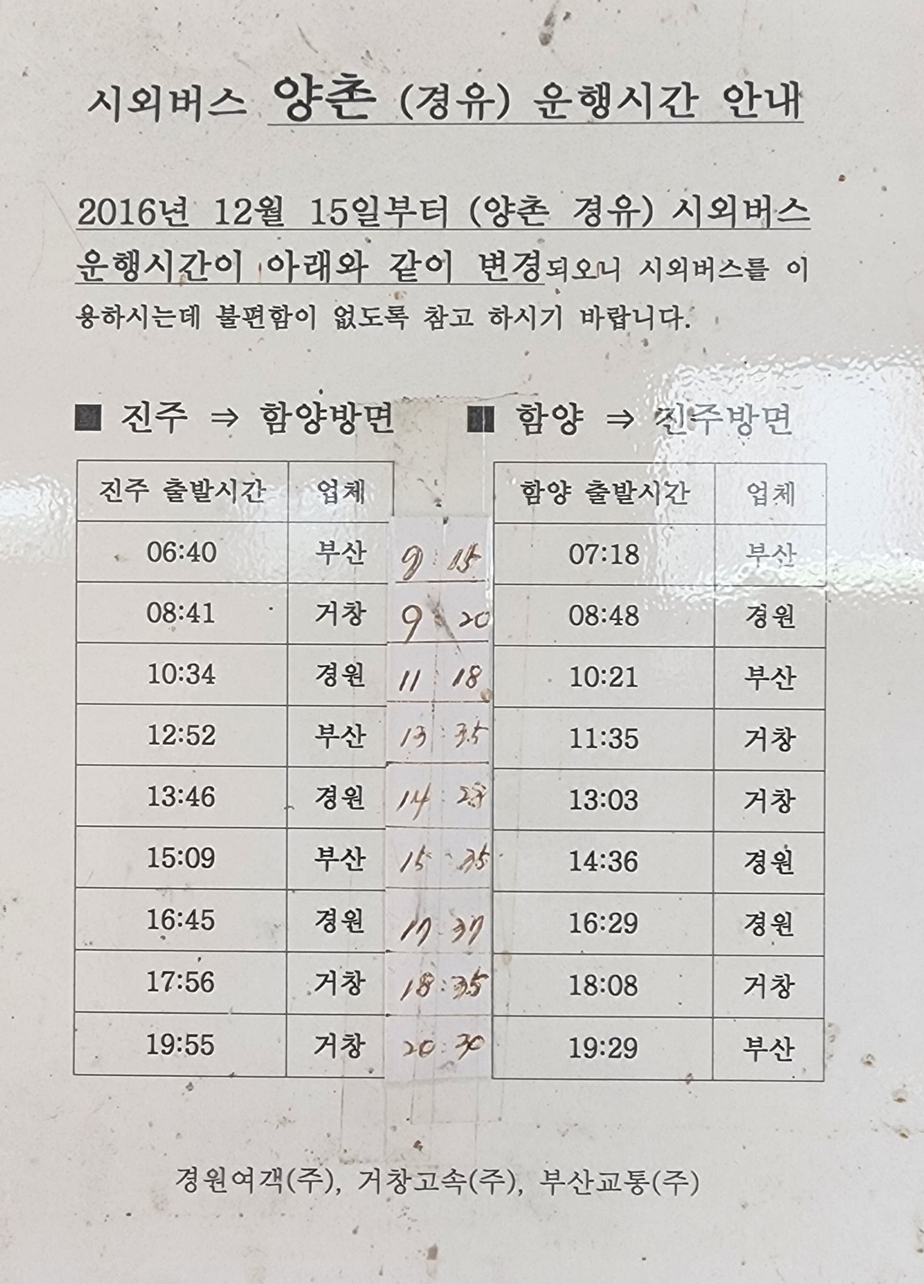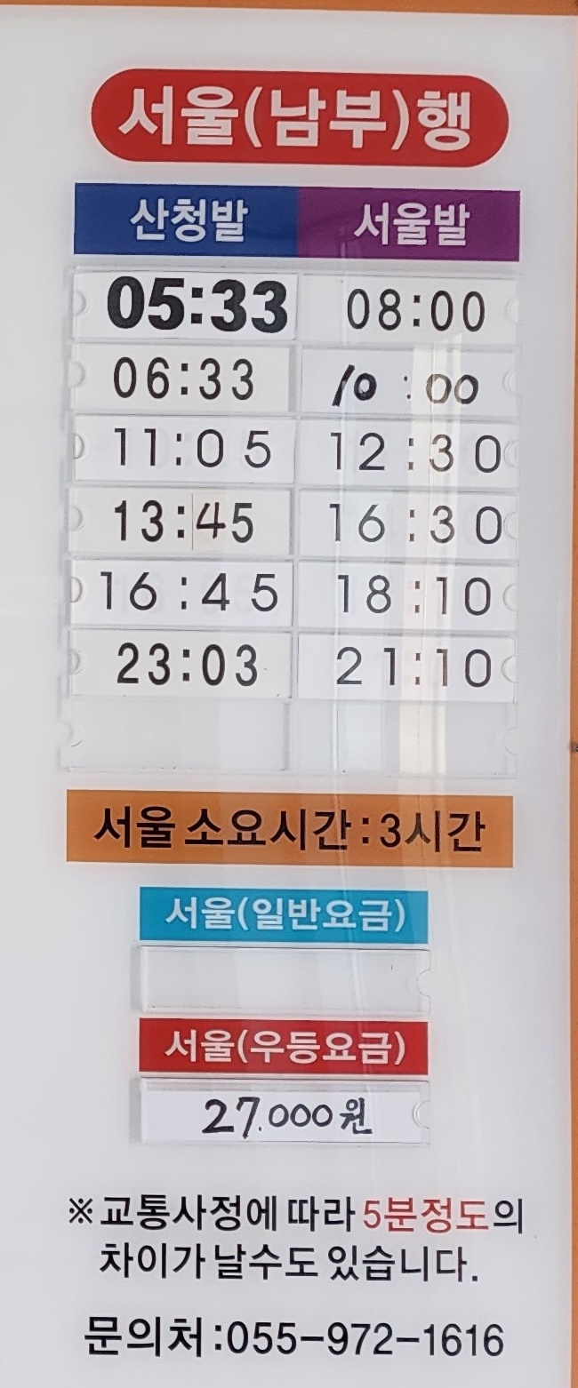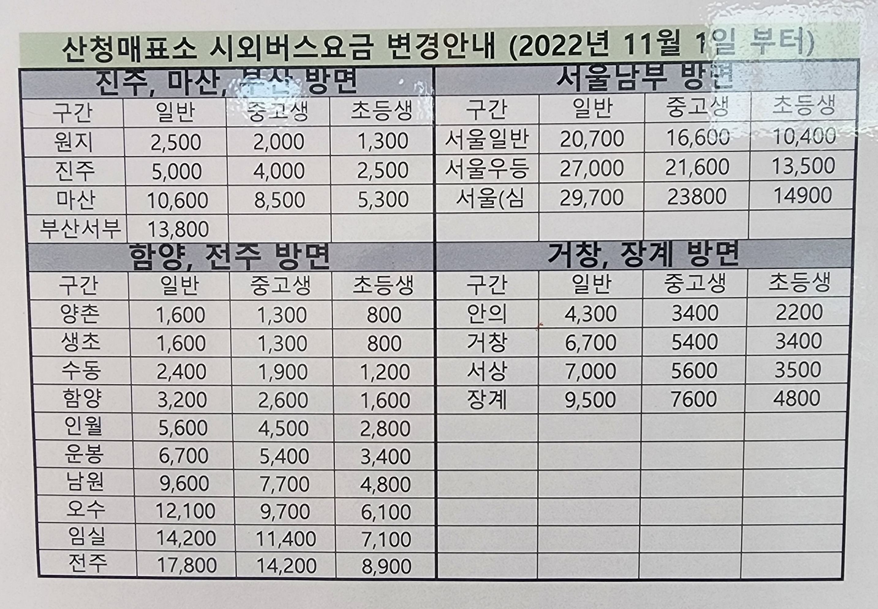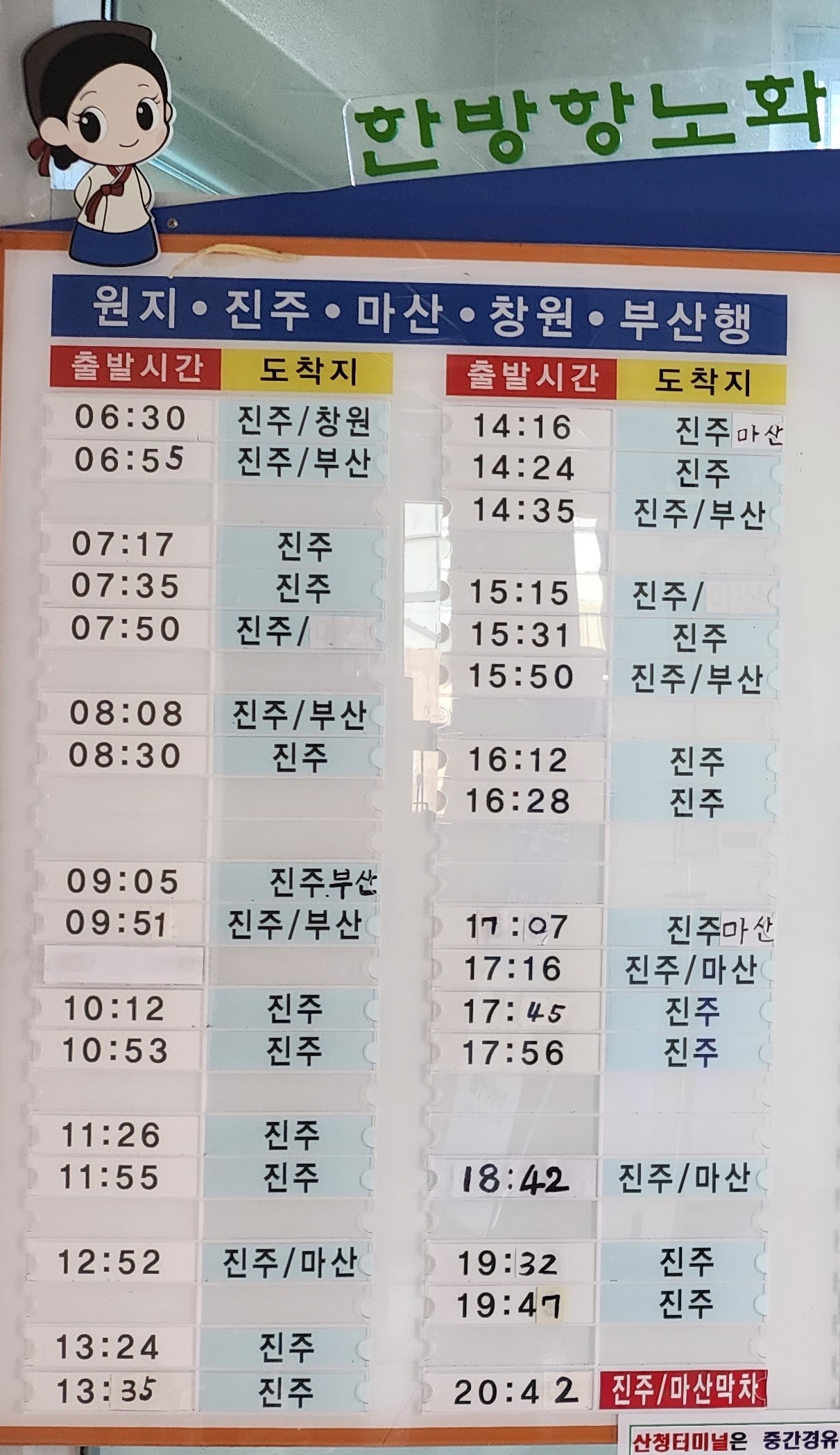 산청 출발 원지, 진주, 마산, 창원, 부산 방면.