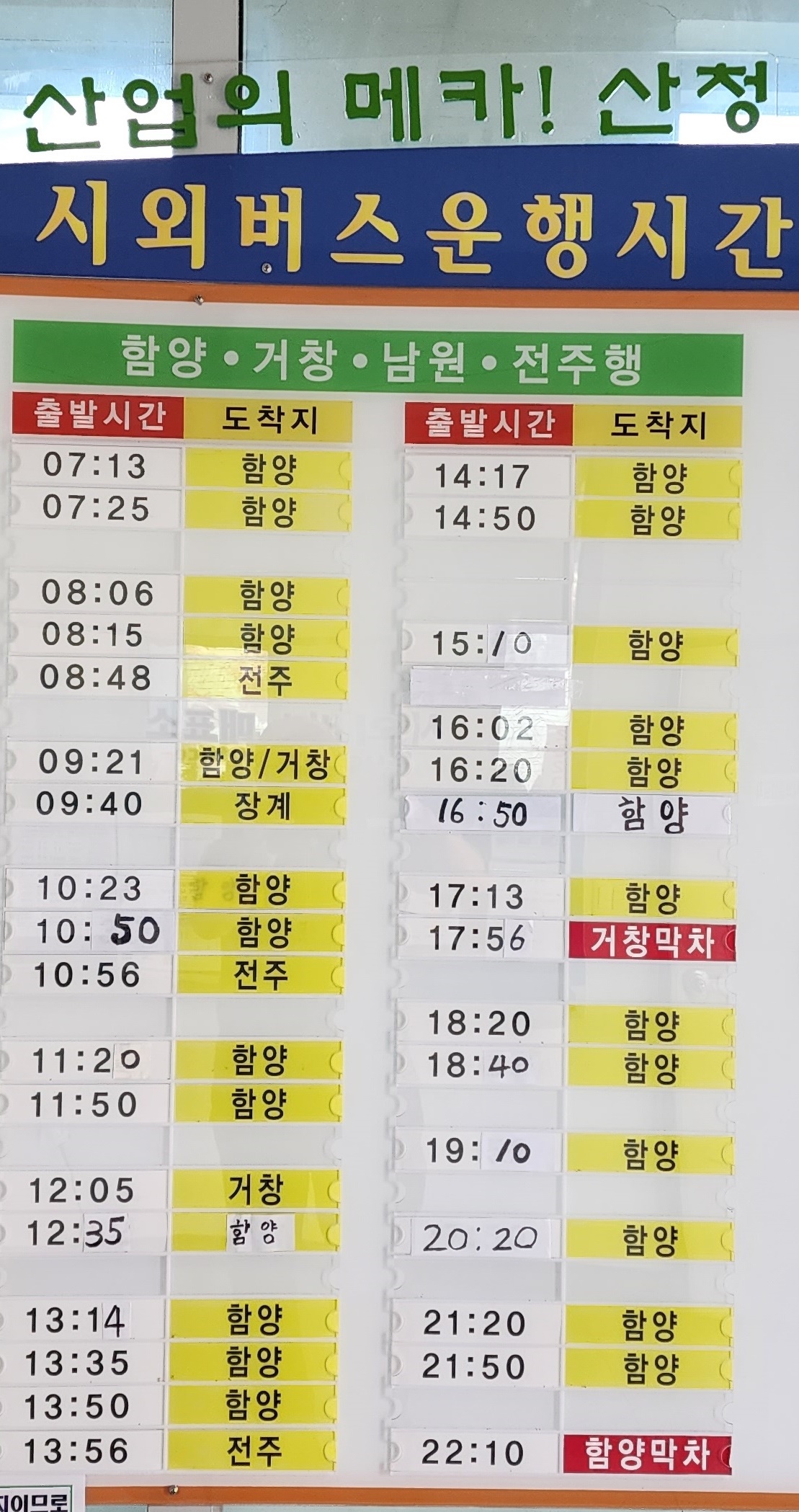 산청 출발 함양, 거창, 남원, 전주 방면.