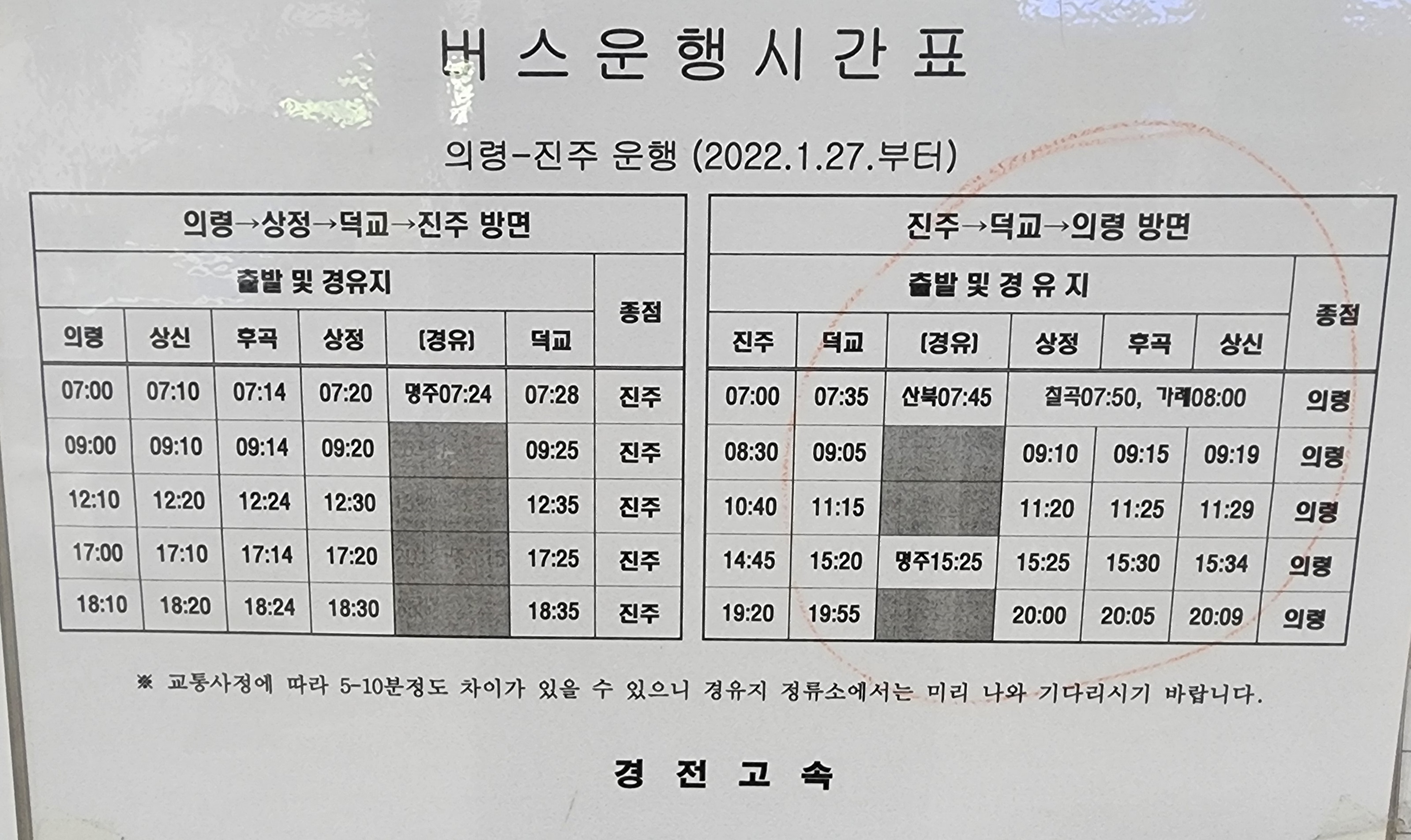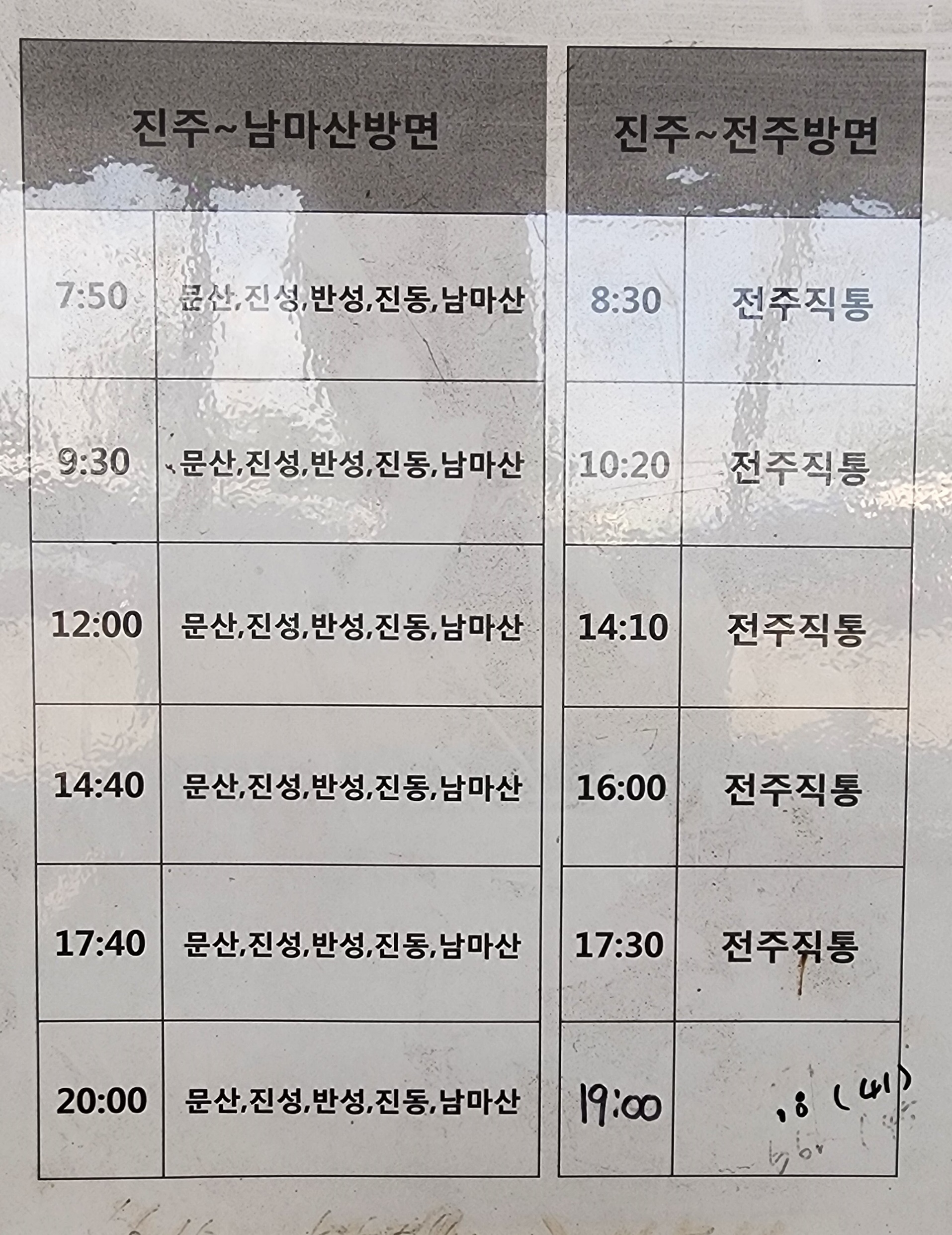 진주시외버스터미널 시간표