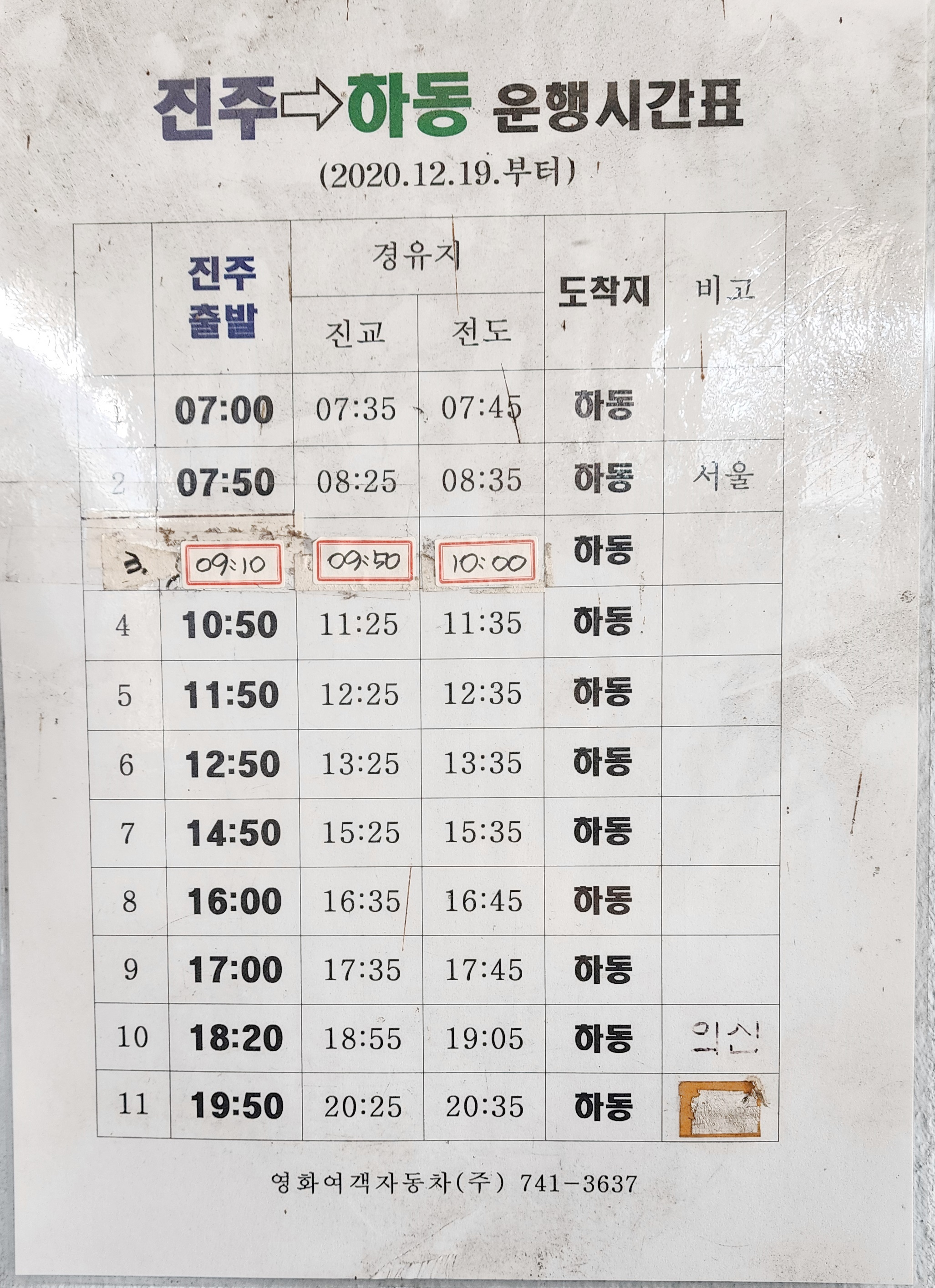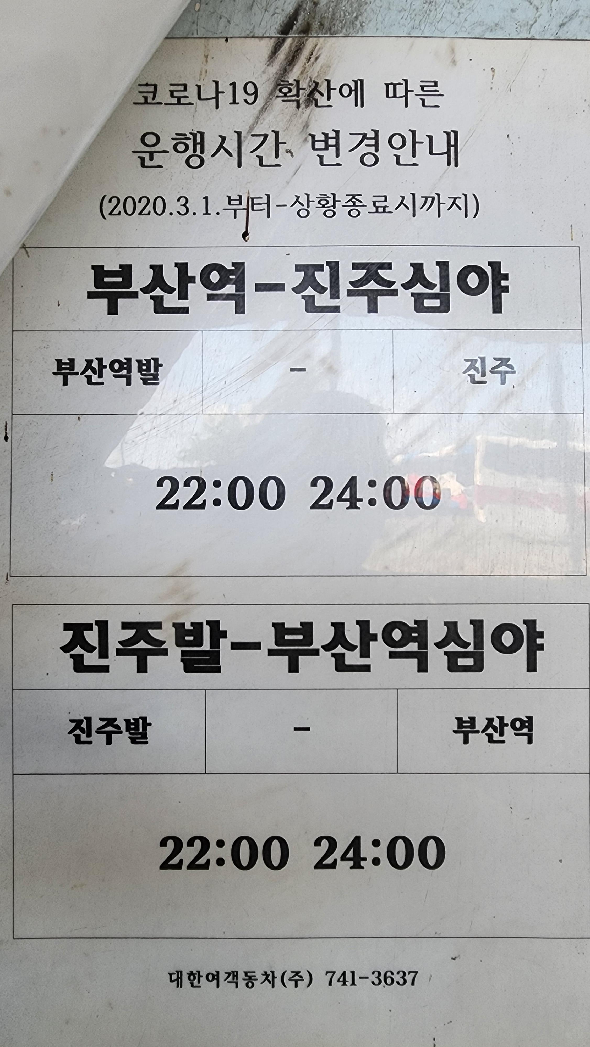 진주시외버스터미널 심야시간표