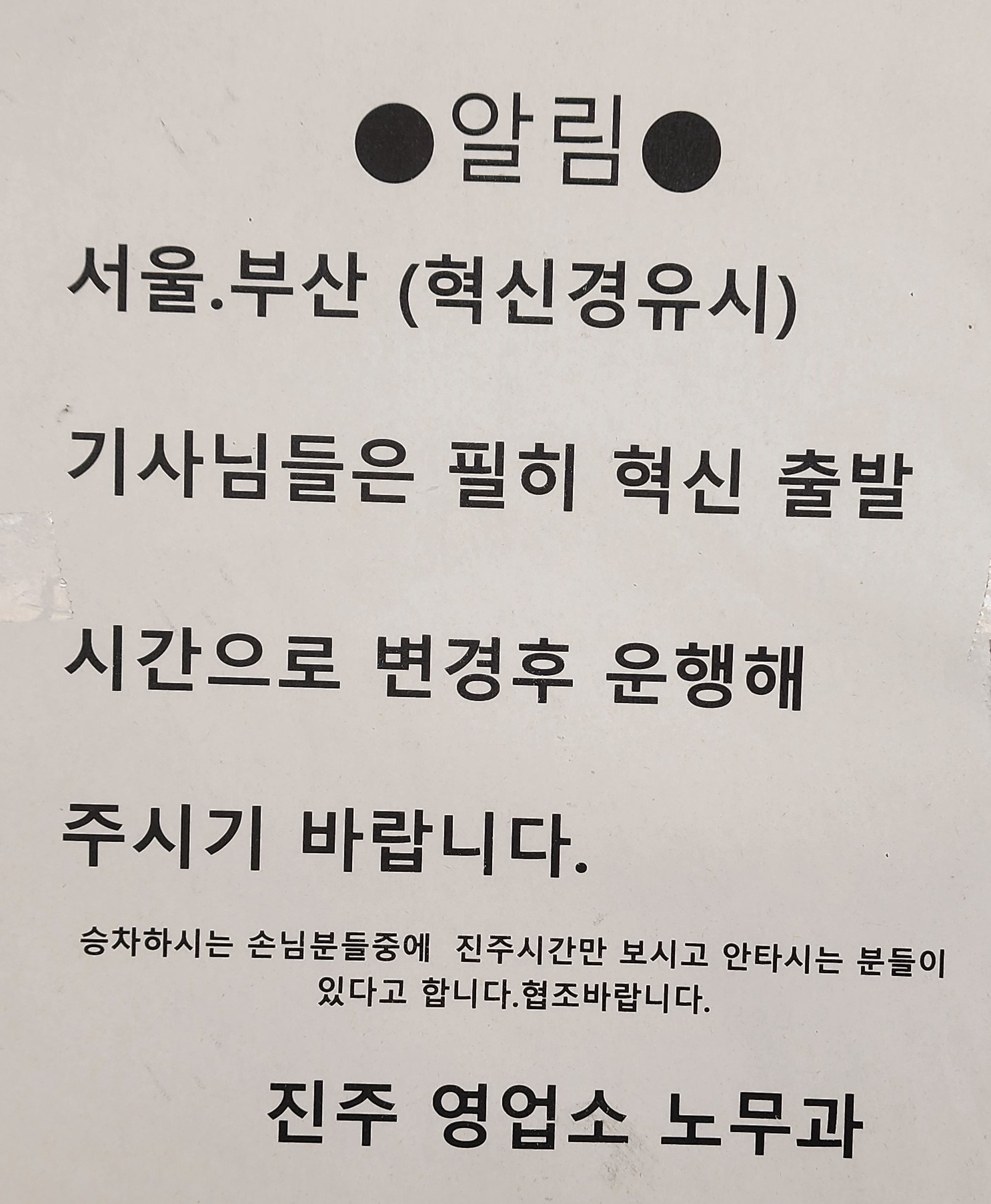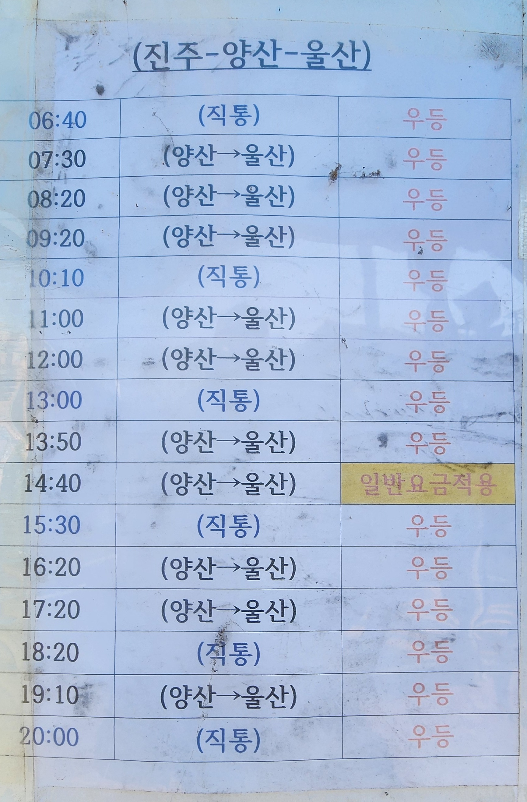 진주 출발 양산 울산 방면.