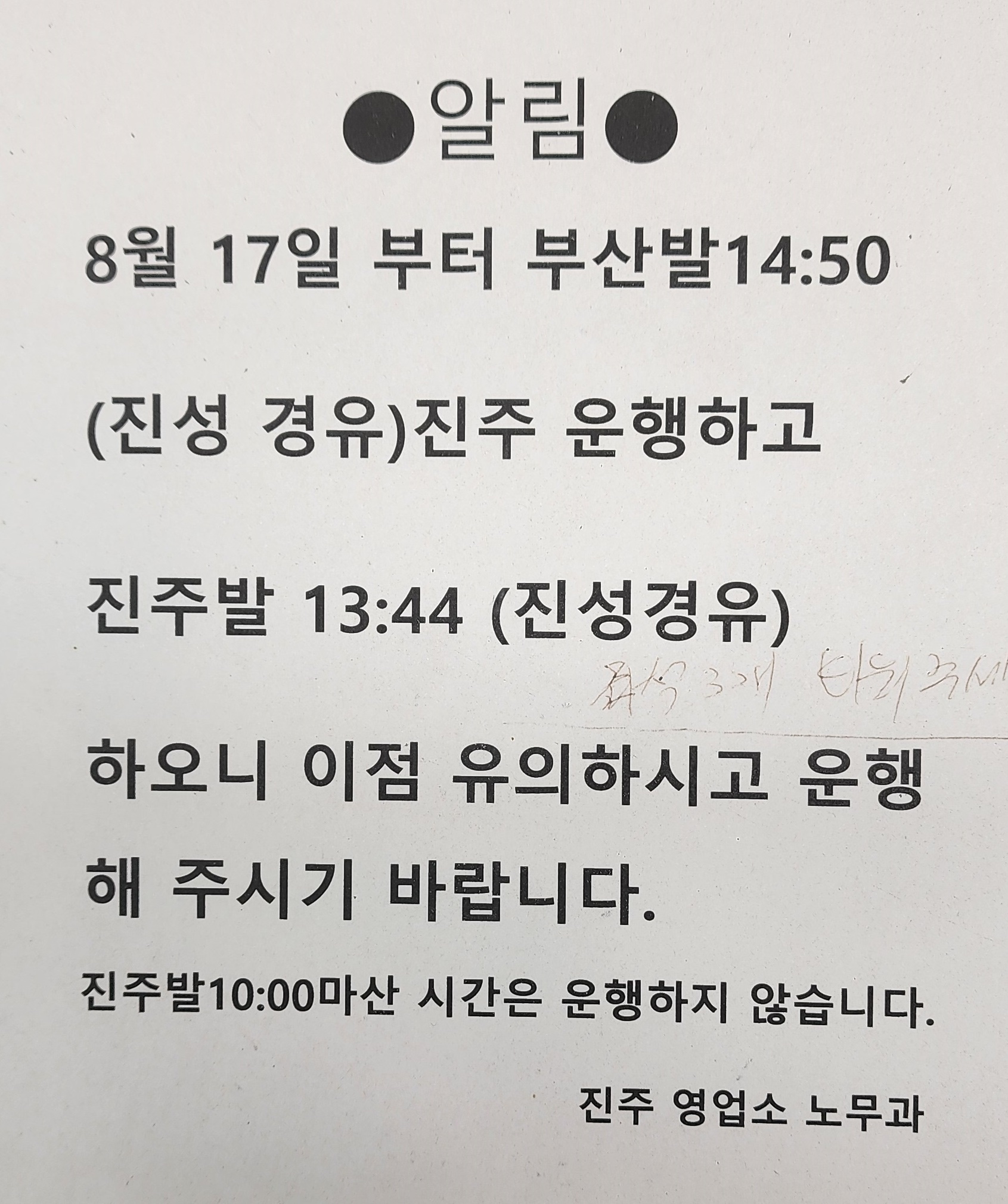 진주 출발 동래ㅡ 부산 동부 노포 방면.