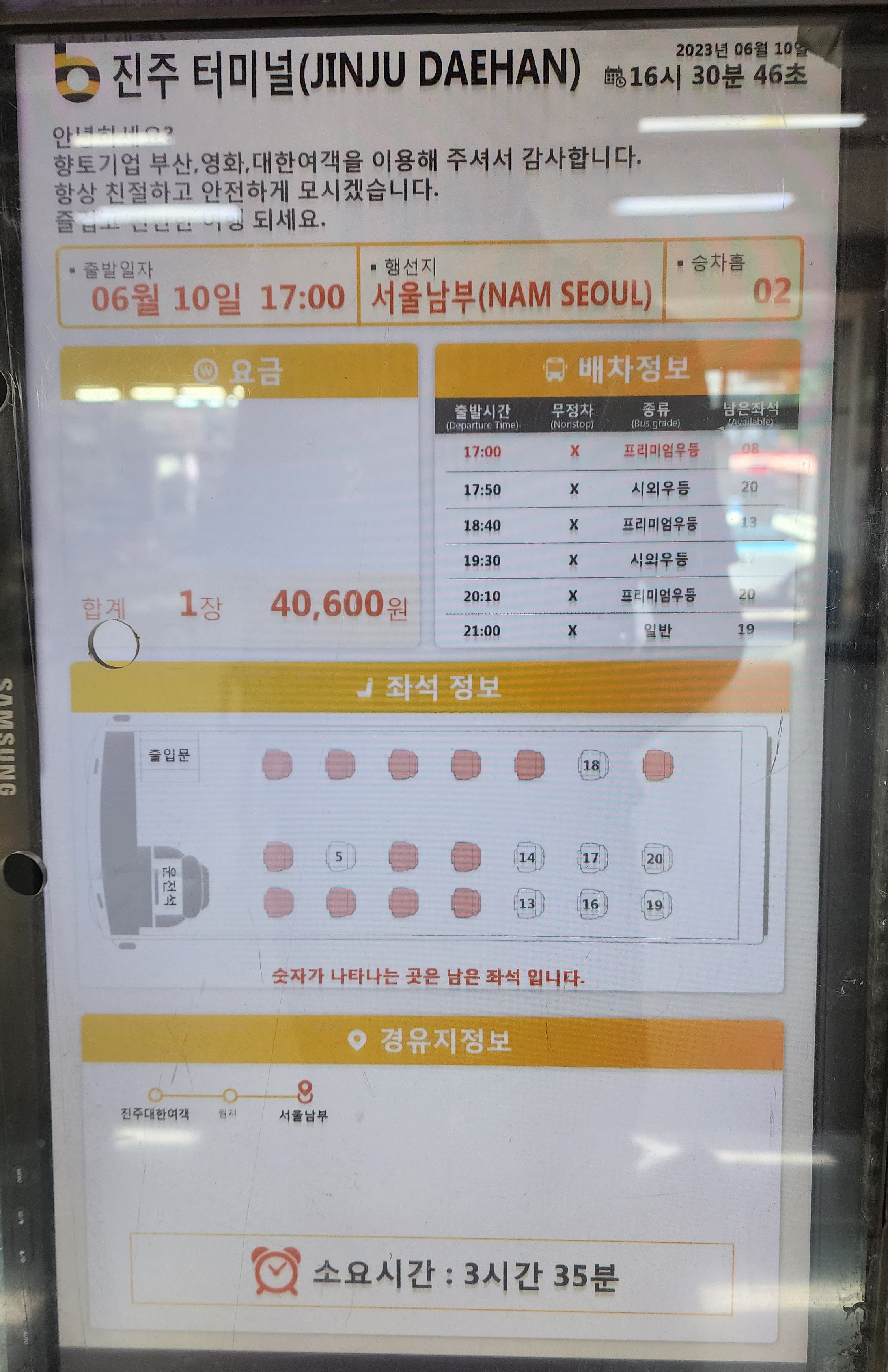 진주 출발 서울 방면.