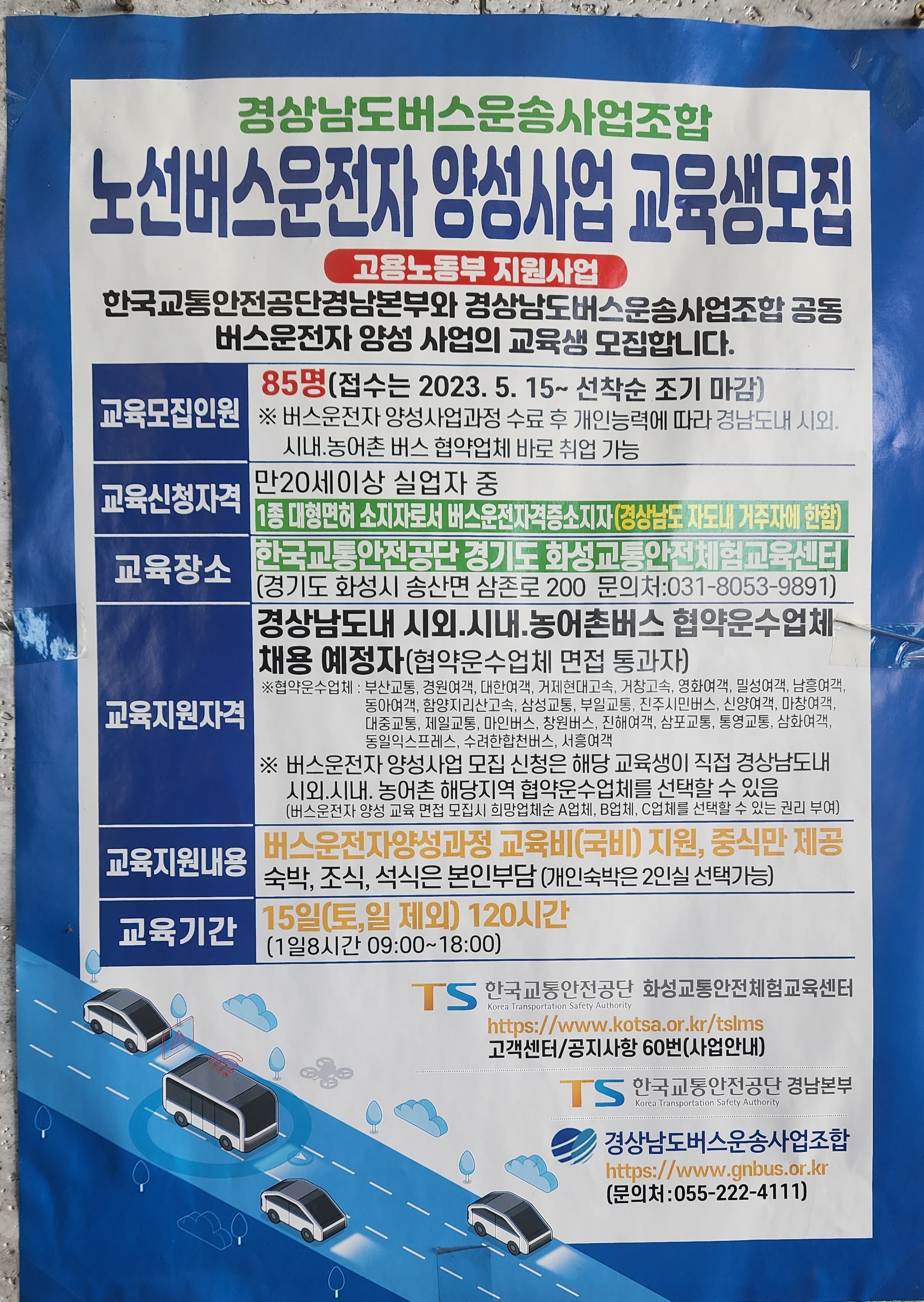 노선버스 운전자 양성사업 교육생 모집