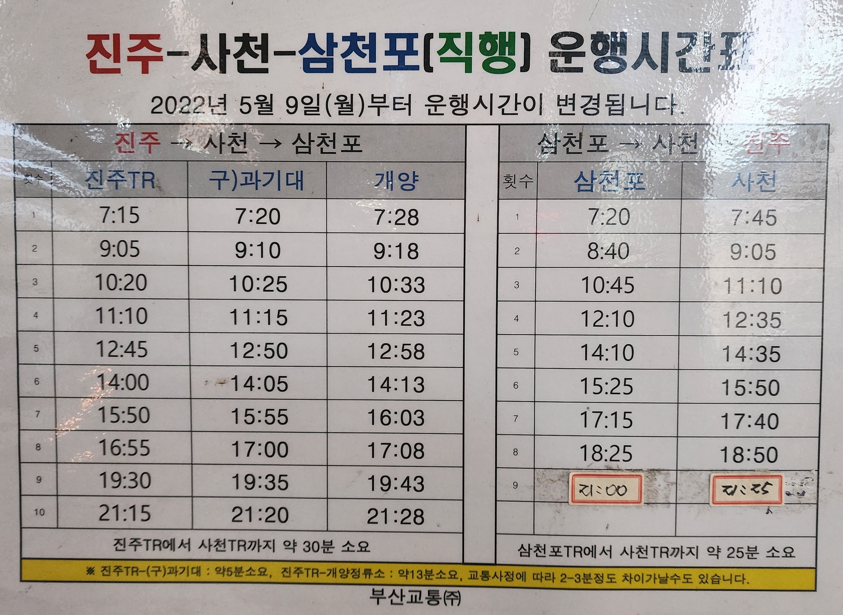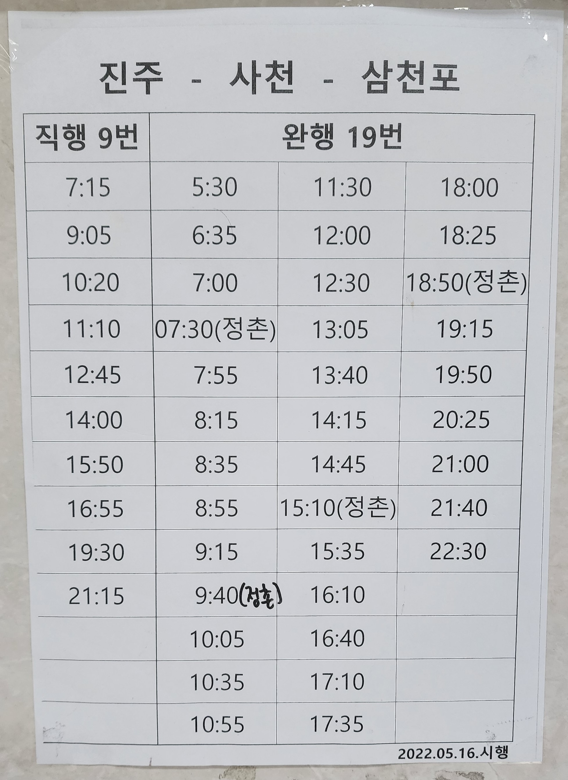 진주, 사천, 삼천포 직행9번 완행 19번.