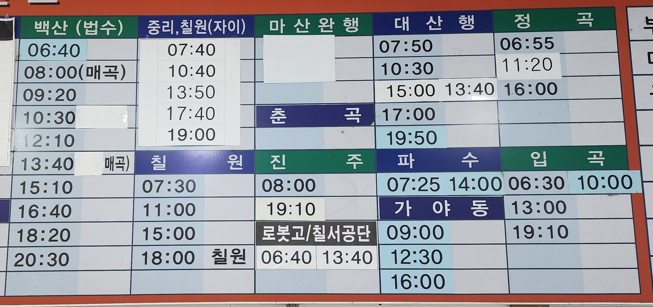 함안시외버스터미널 시간표