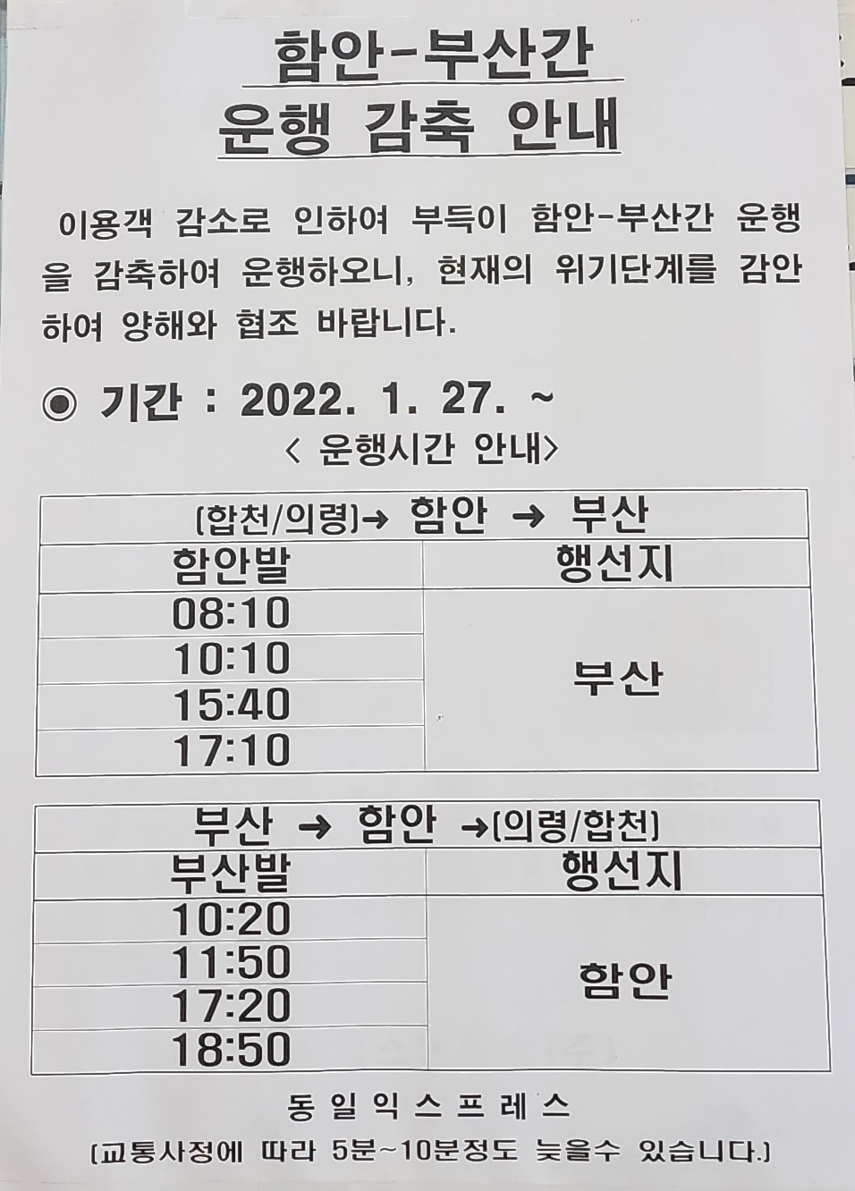 함안 부산 운행시간표
