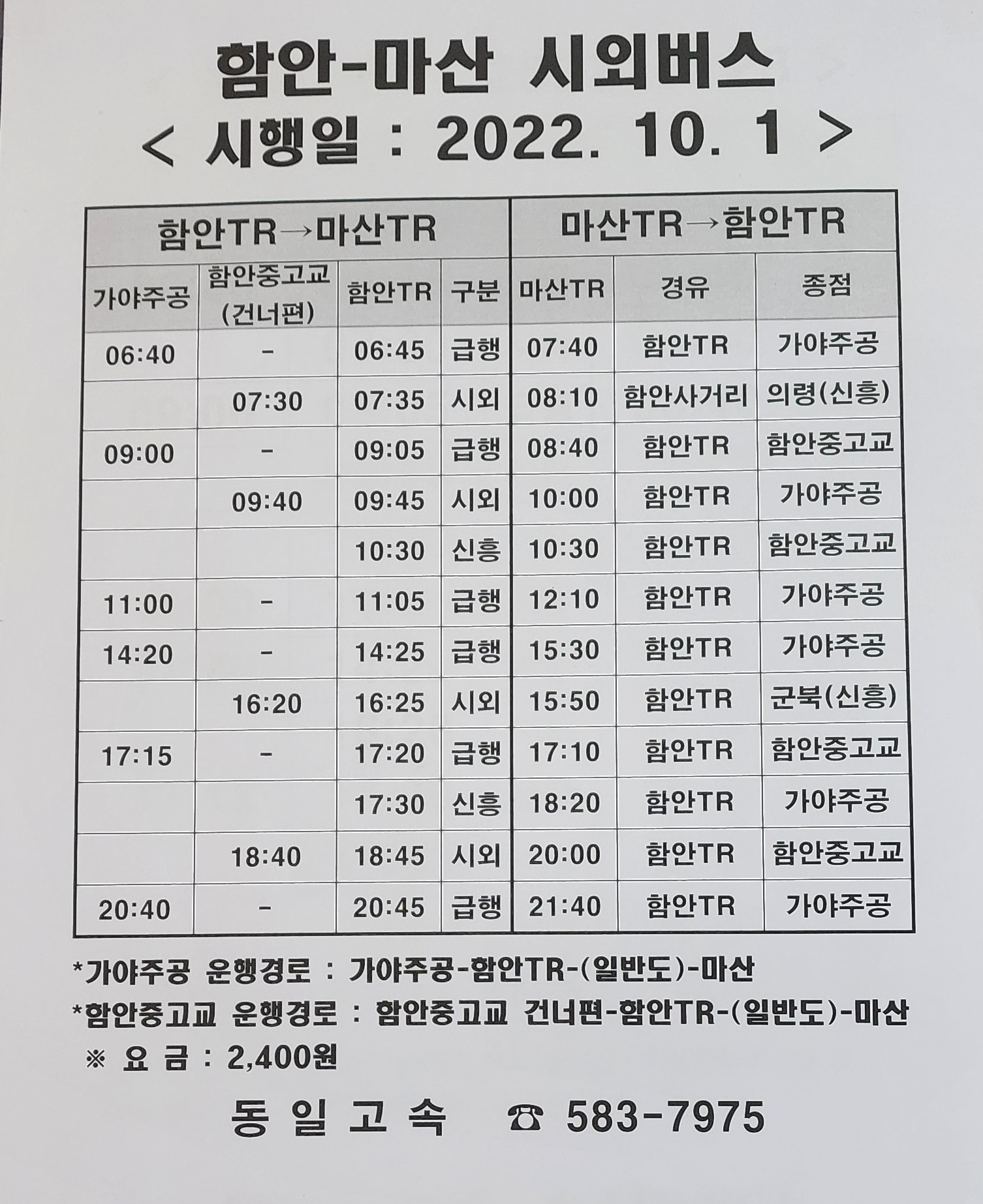 함안 출발 마산, 군북, 의령, 부산, 진주 방면.