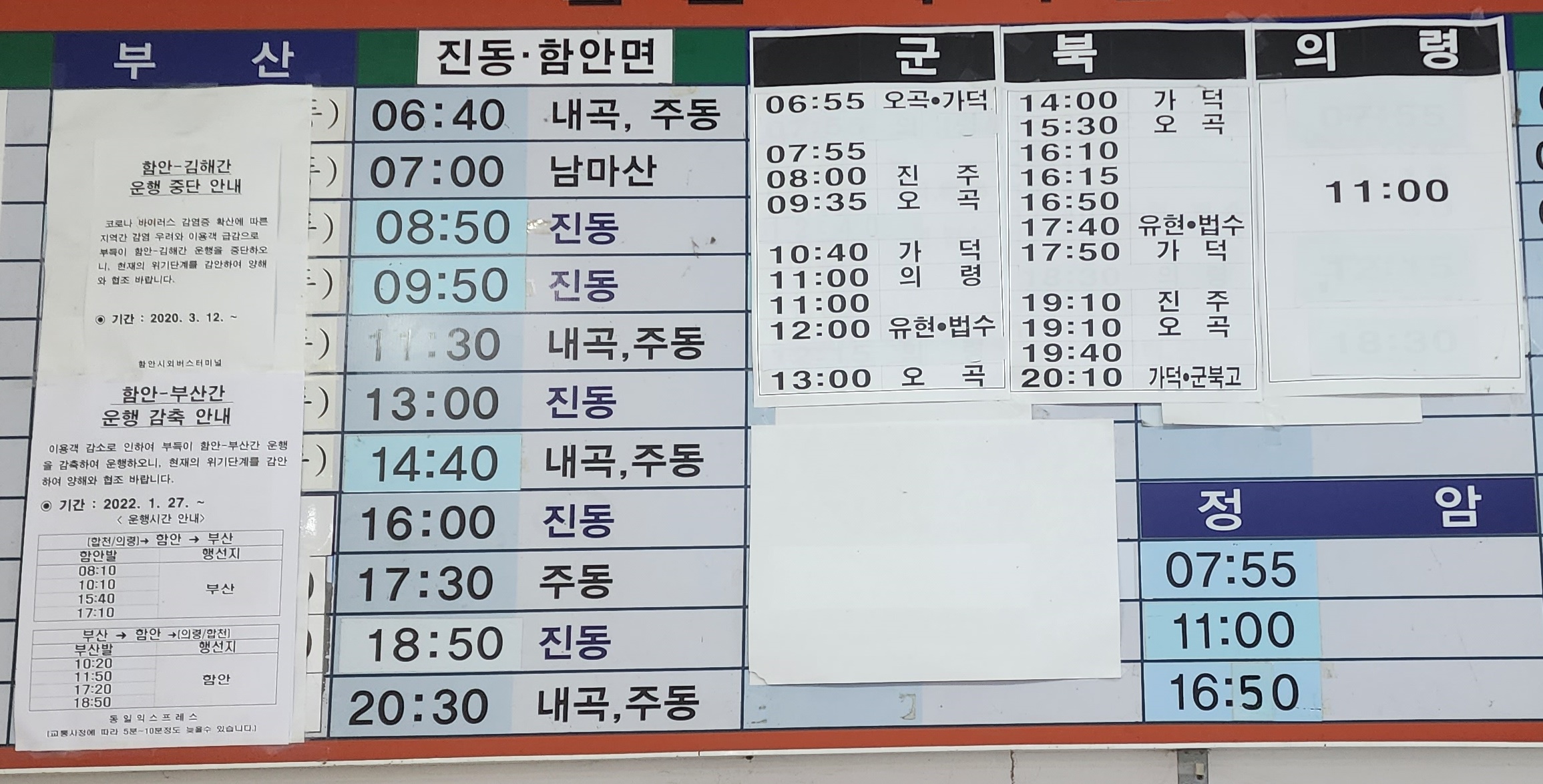 함안 출발 부산, 진동, 군북, 의령, 정암 방면.