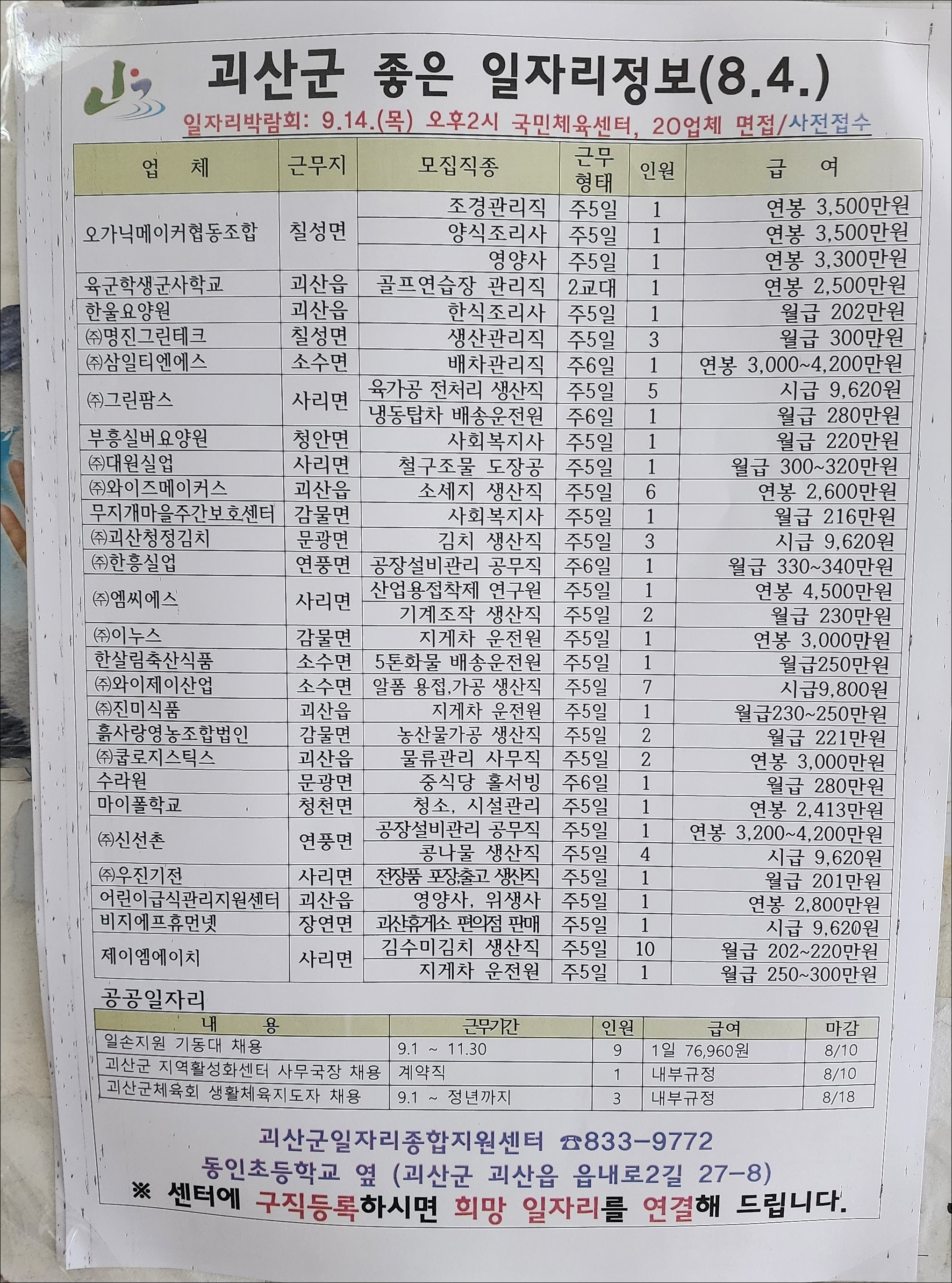 2023년 8월 14일부터 괴산 출발 청주 오전시간표 변경