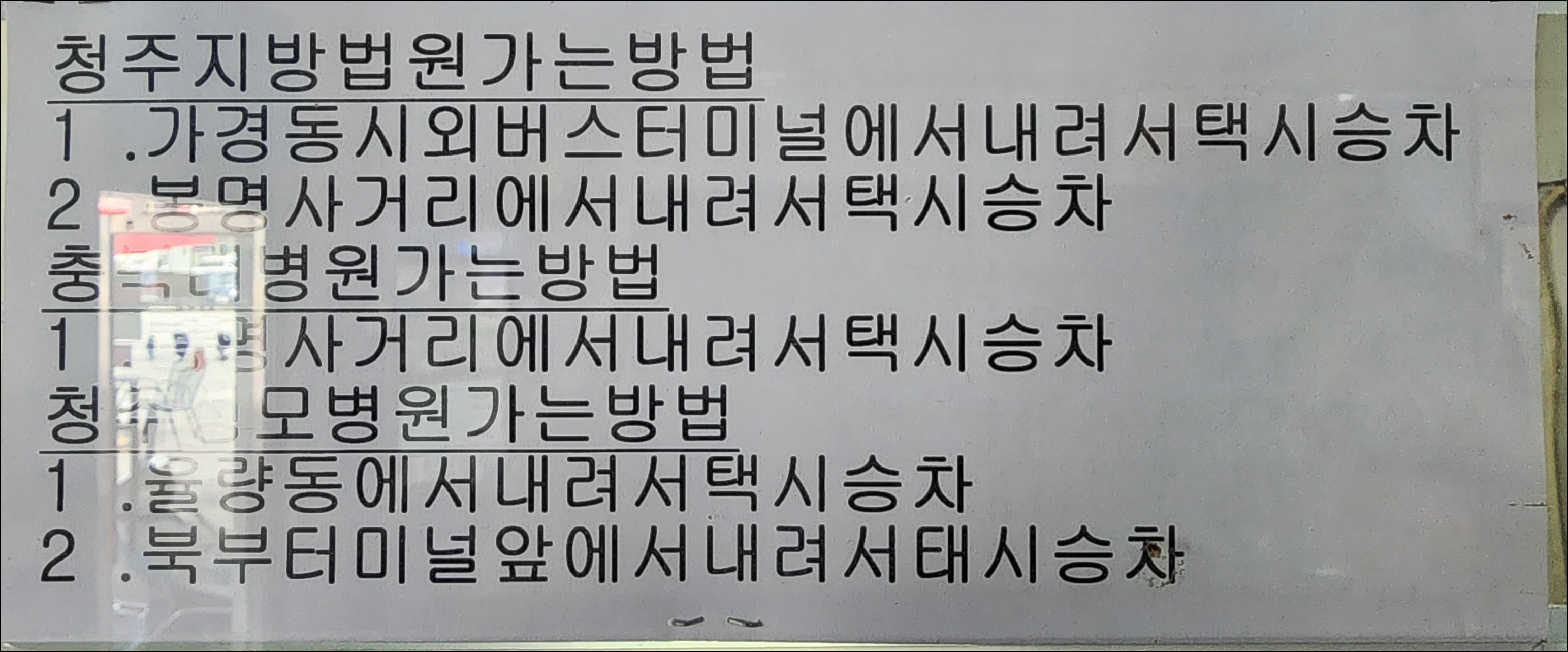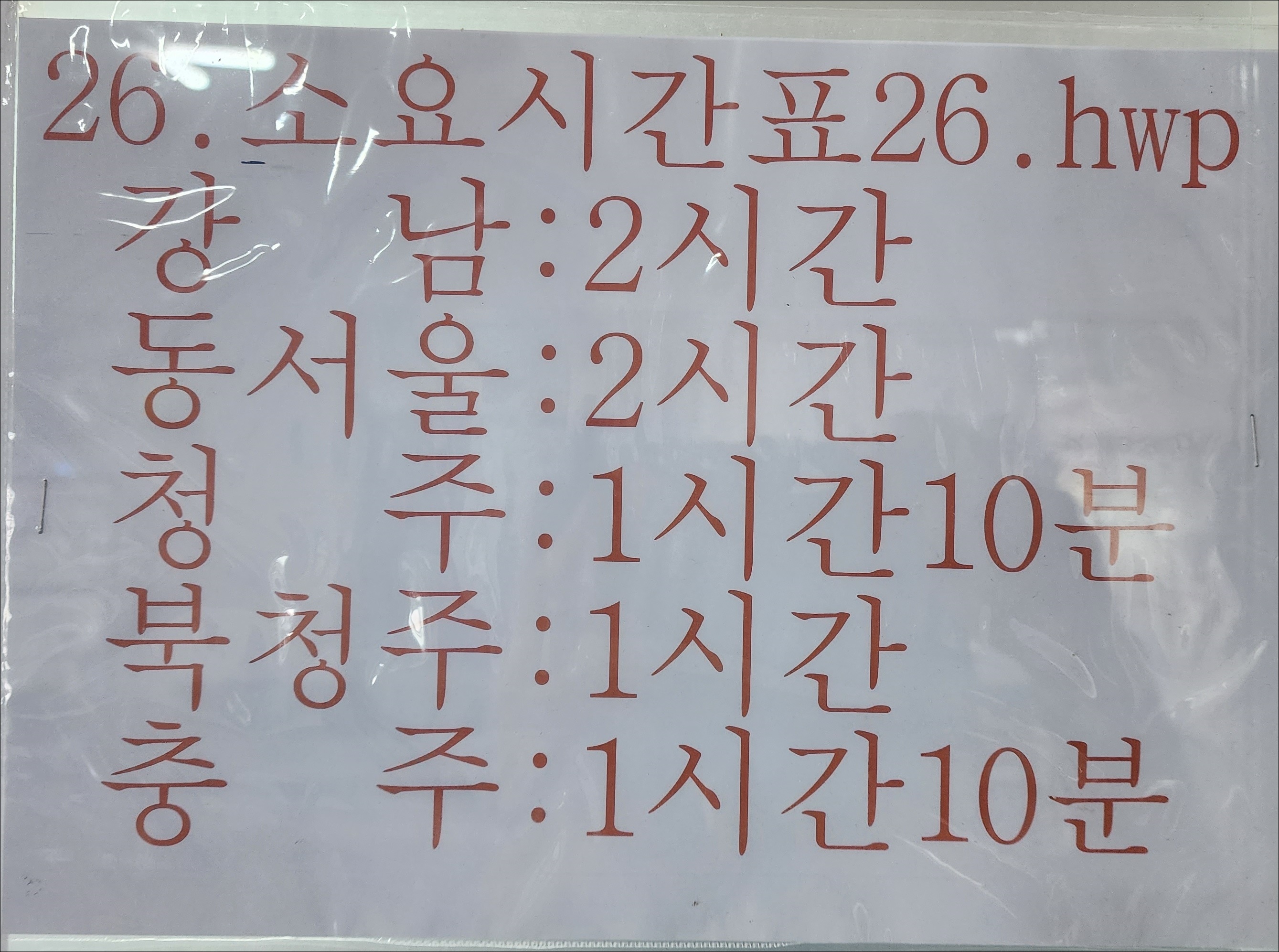 괴산 출발 동서울, 강남센트럴, 청주, 칠성, 수전 방면.