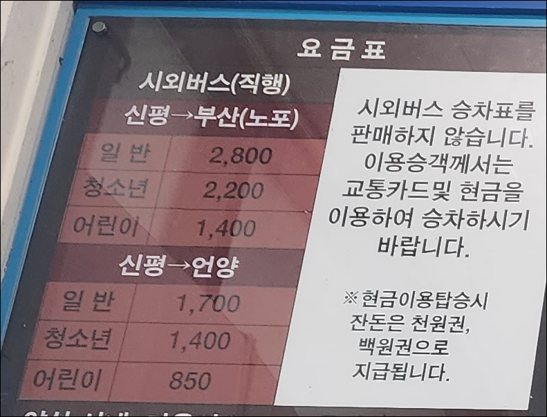 통도사 신평 시외버스터미널 시간표