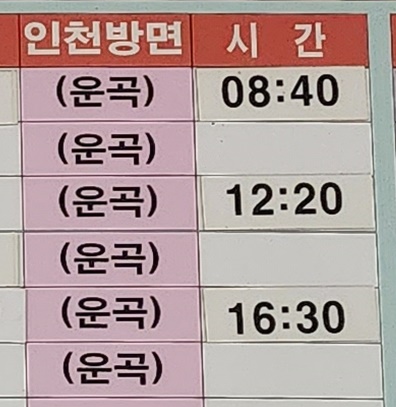 청양 출발 인천 방면