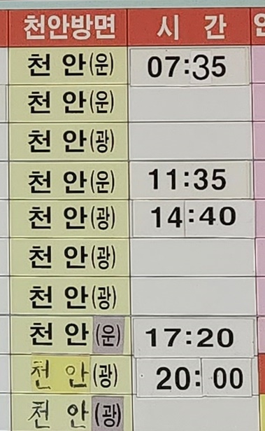 청양시외버스터미널 시간표