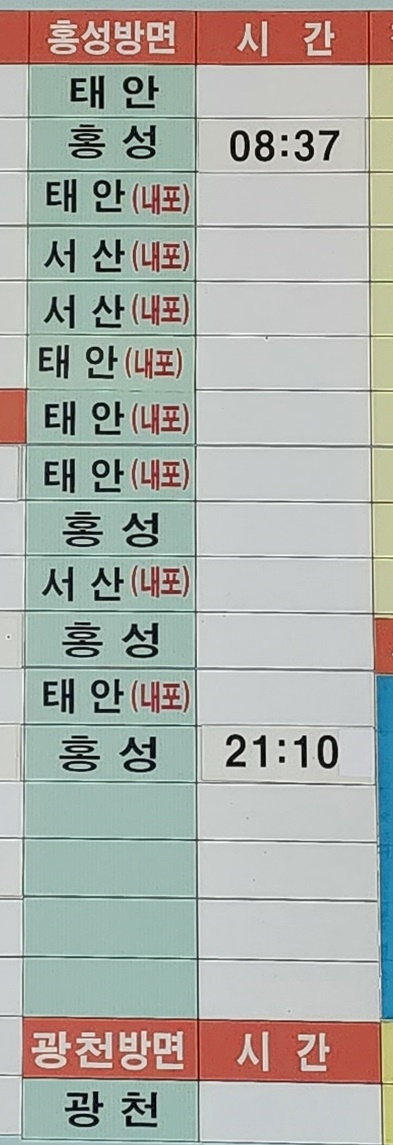청양 출발 시내버스 시간표