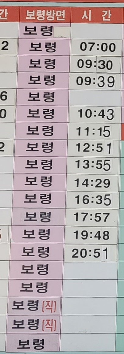 청양 출발 보령 방면