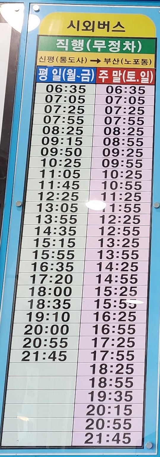 양산 통도사 신평시외버스터미널 시간표