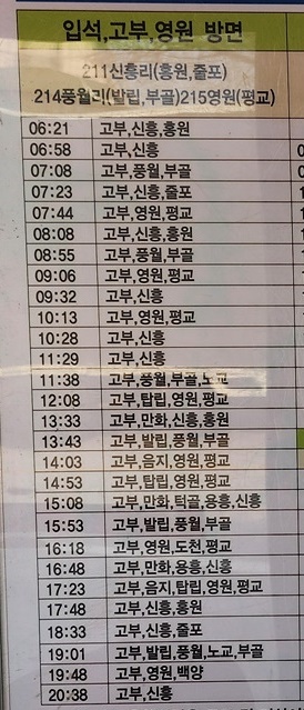 샘고을시장 출발 입석, 백운, 마정 방면.