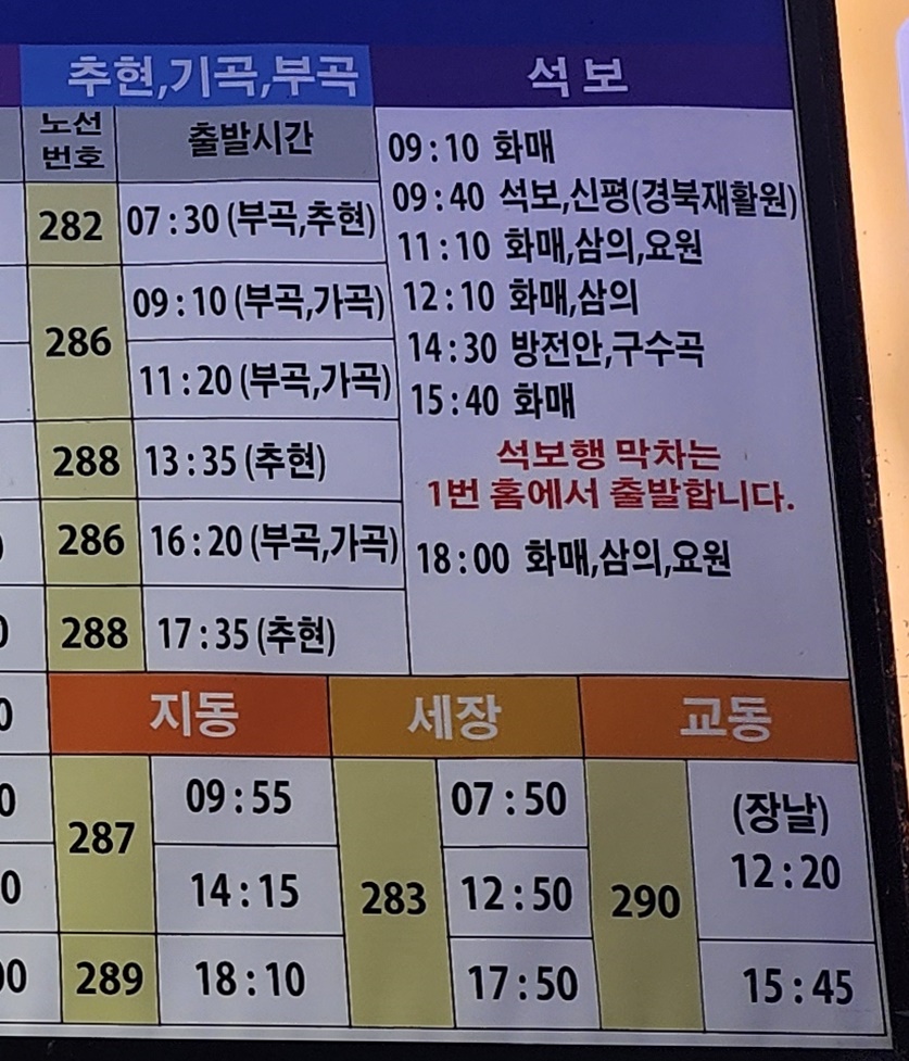 진보 출발 추현, 기곡, 부곡, 석보, 자동, 새장, 교동 방면.
