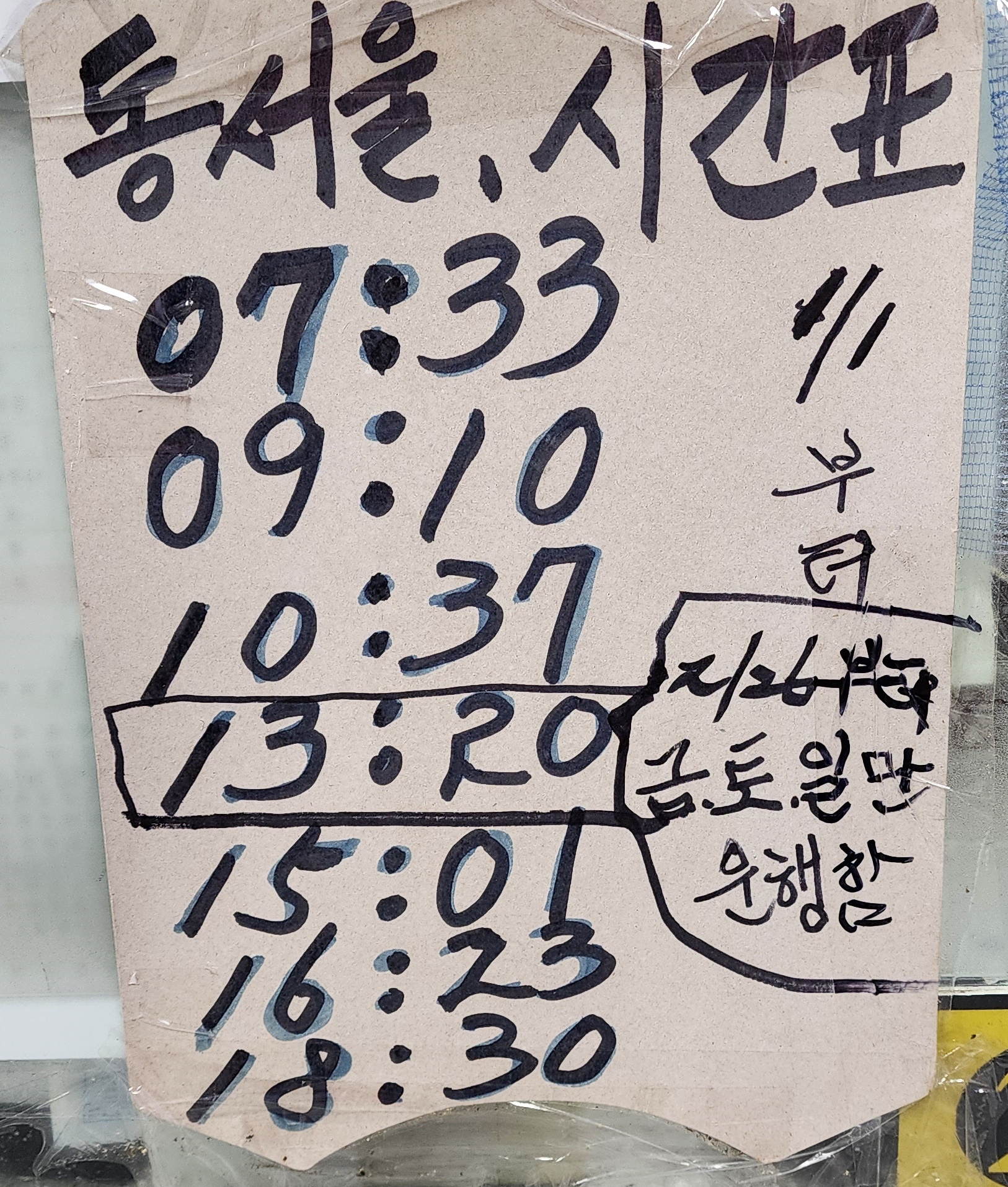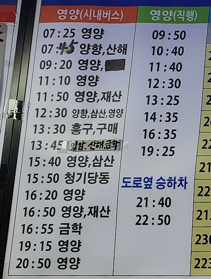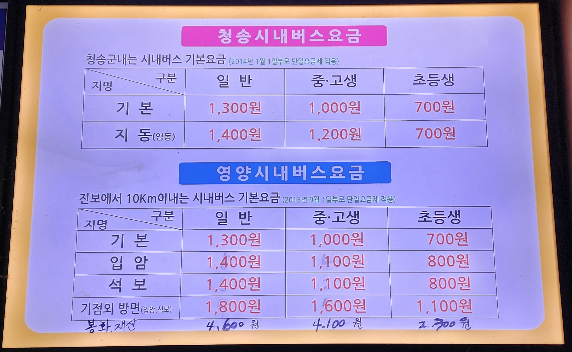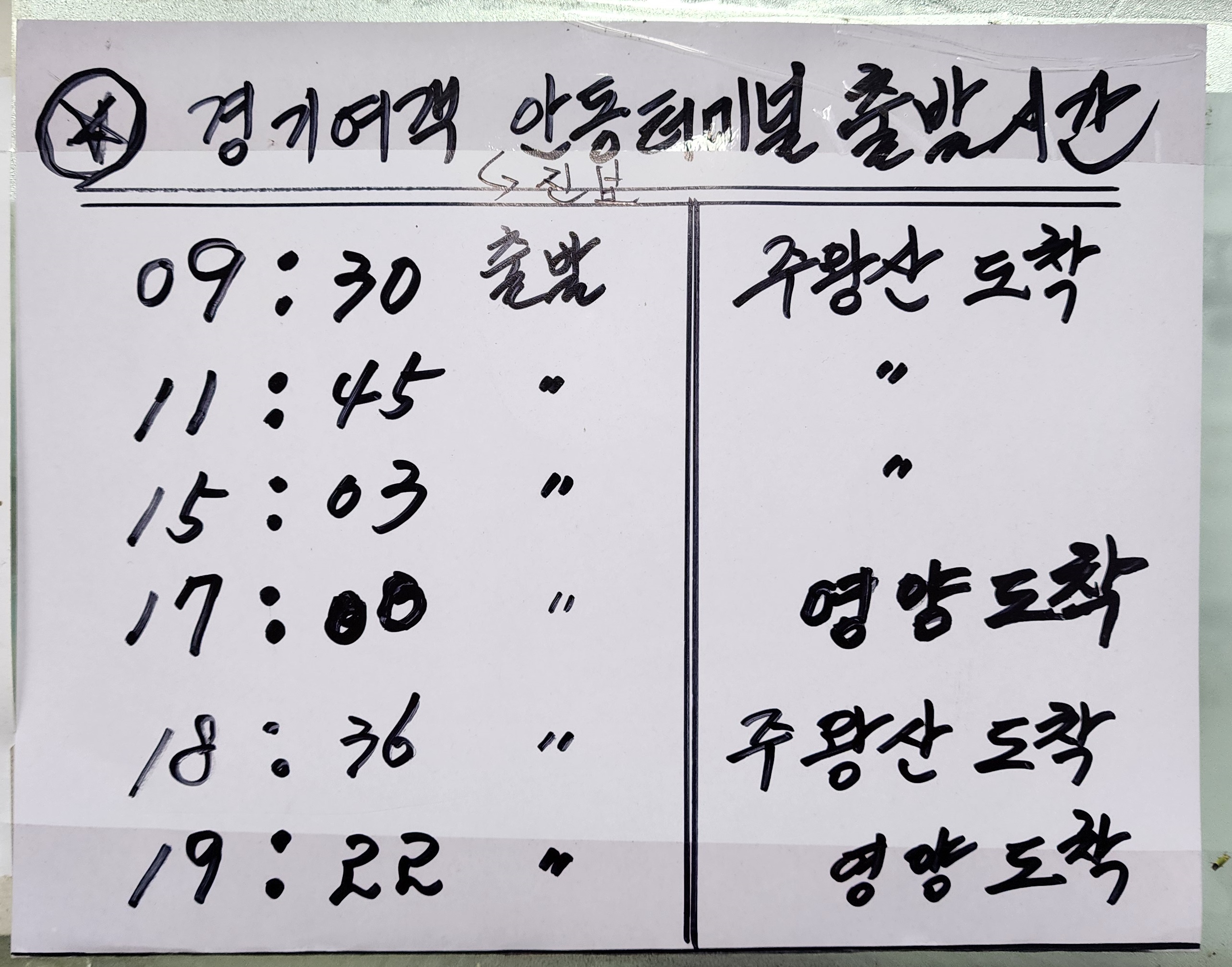 경기여객 안동터미널 출발 진보터미널 도착 시간