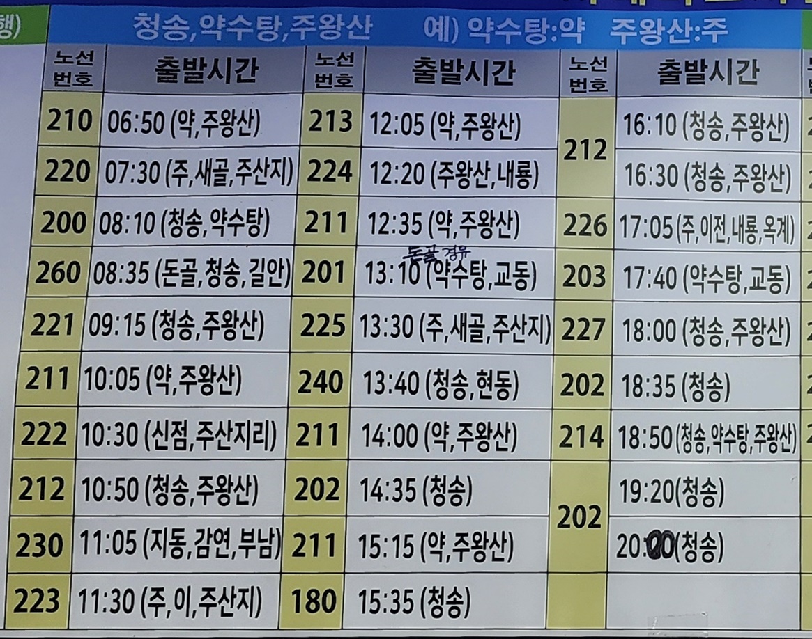 진보 출발 청송, 약수탕, 주왕산 방면.