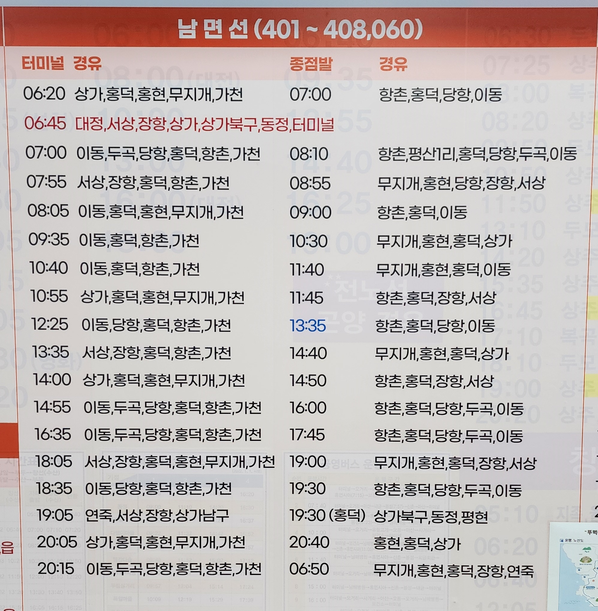 남해군 농어촌 버스 시간표
