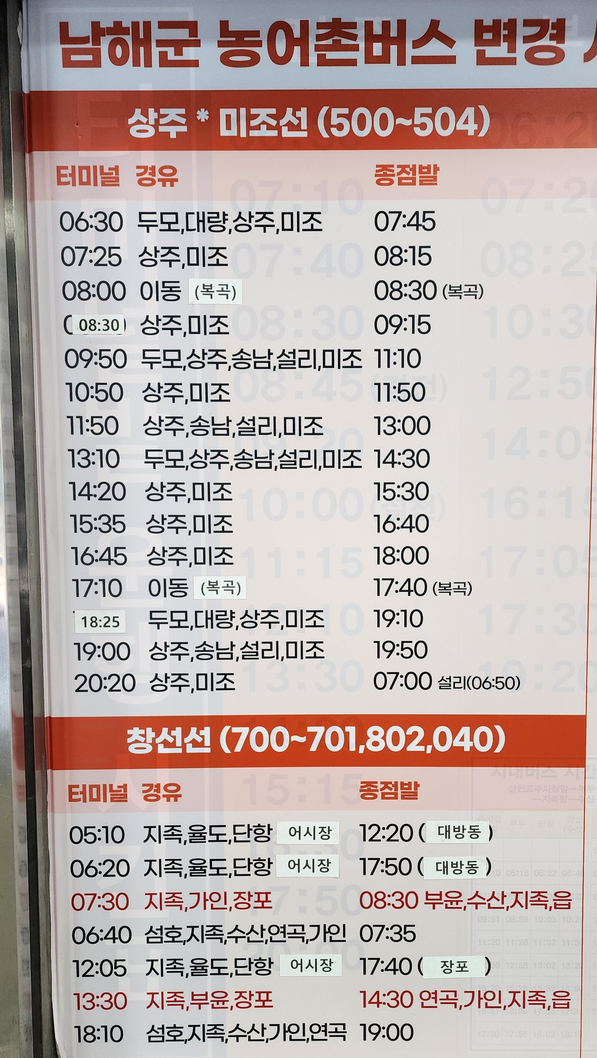 남해군 농어촌 버스 시간표