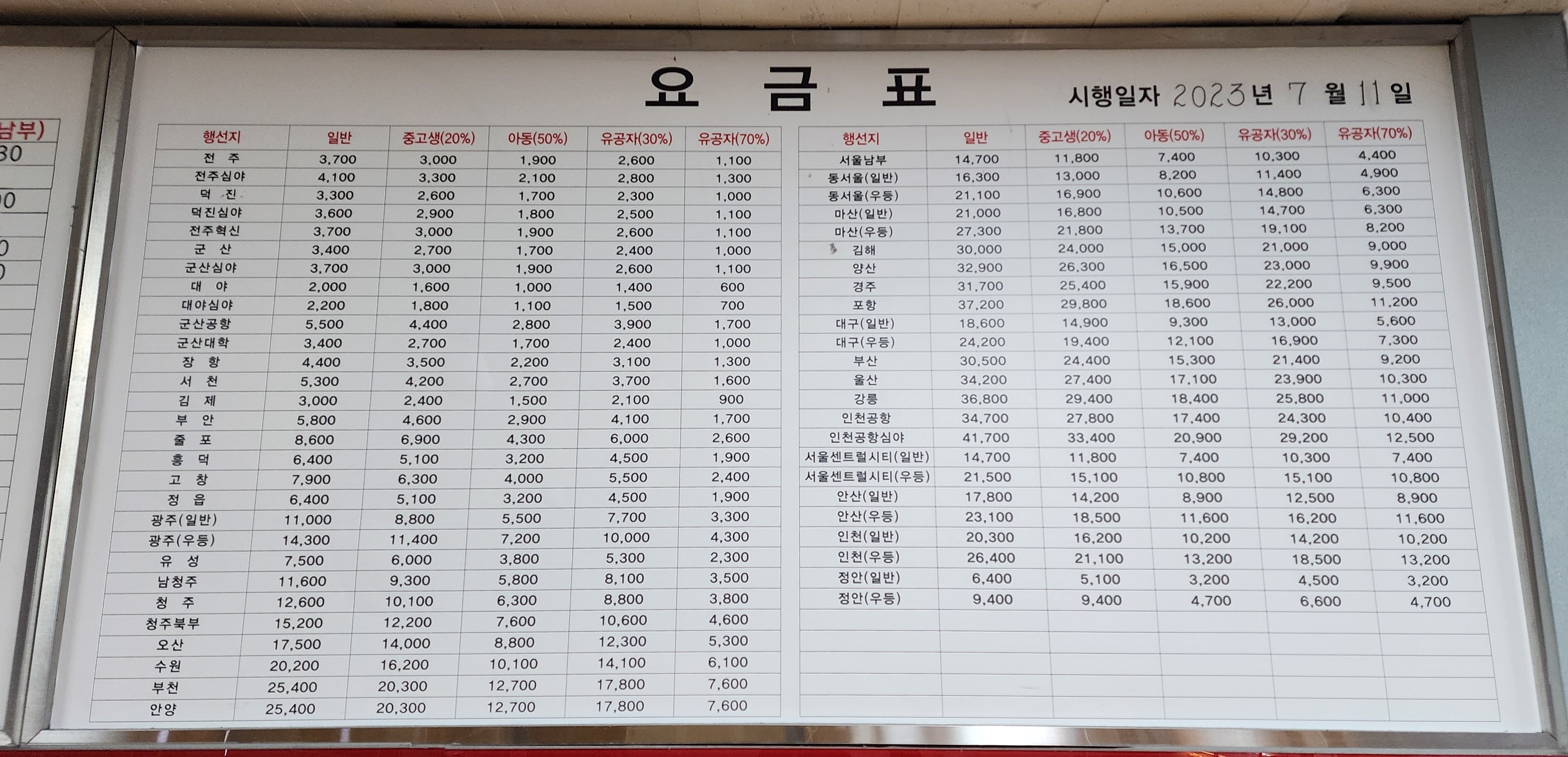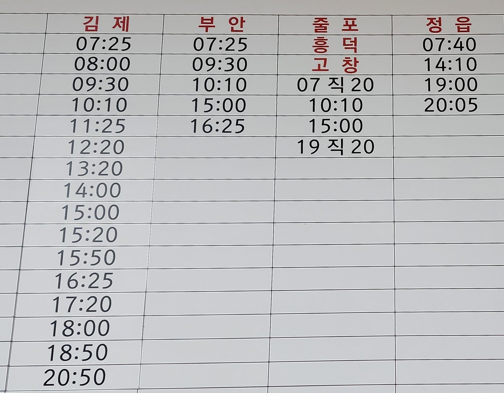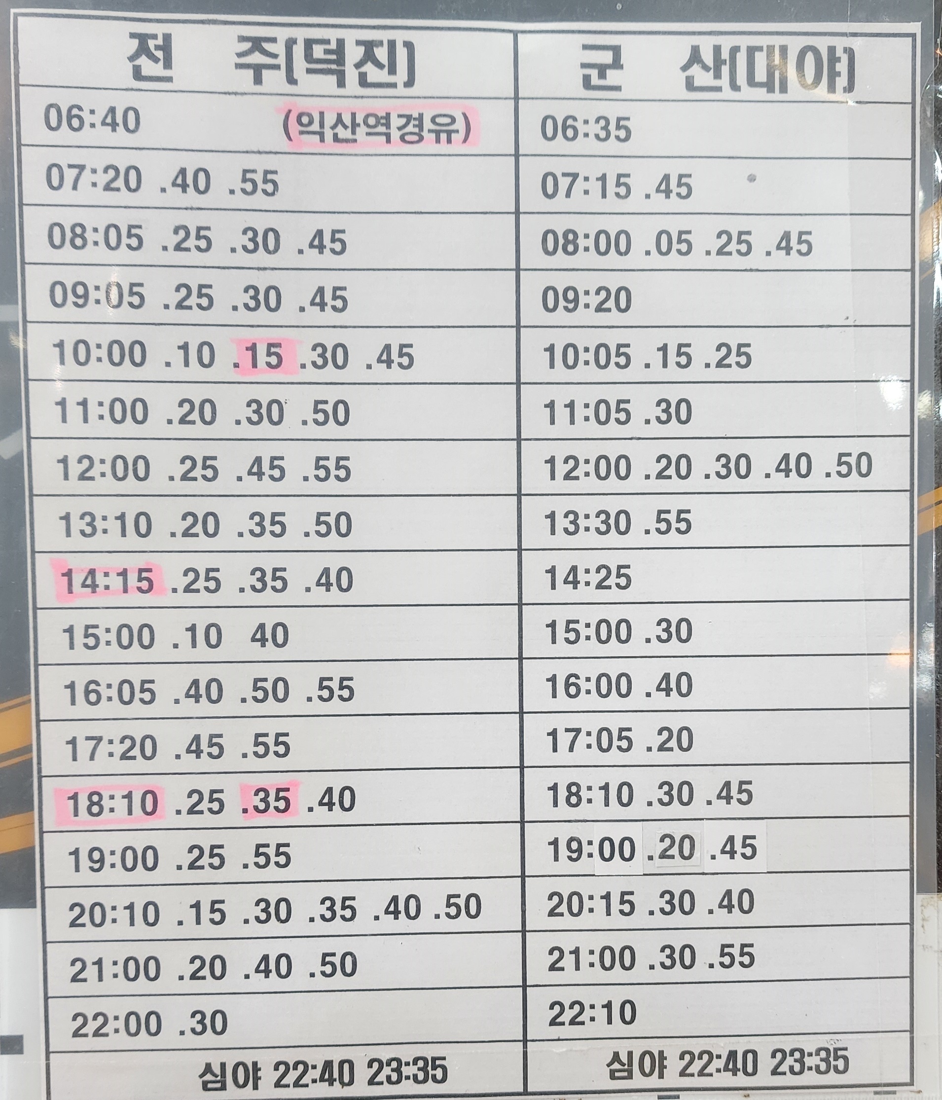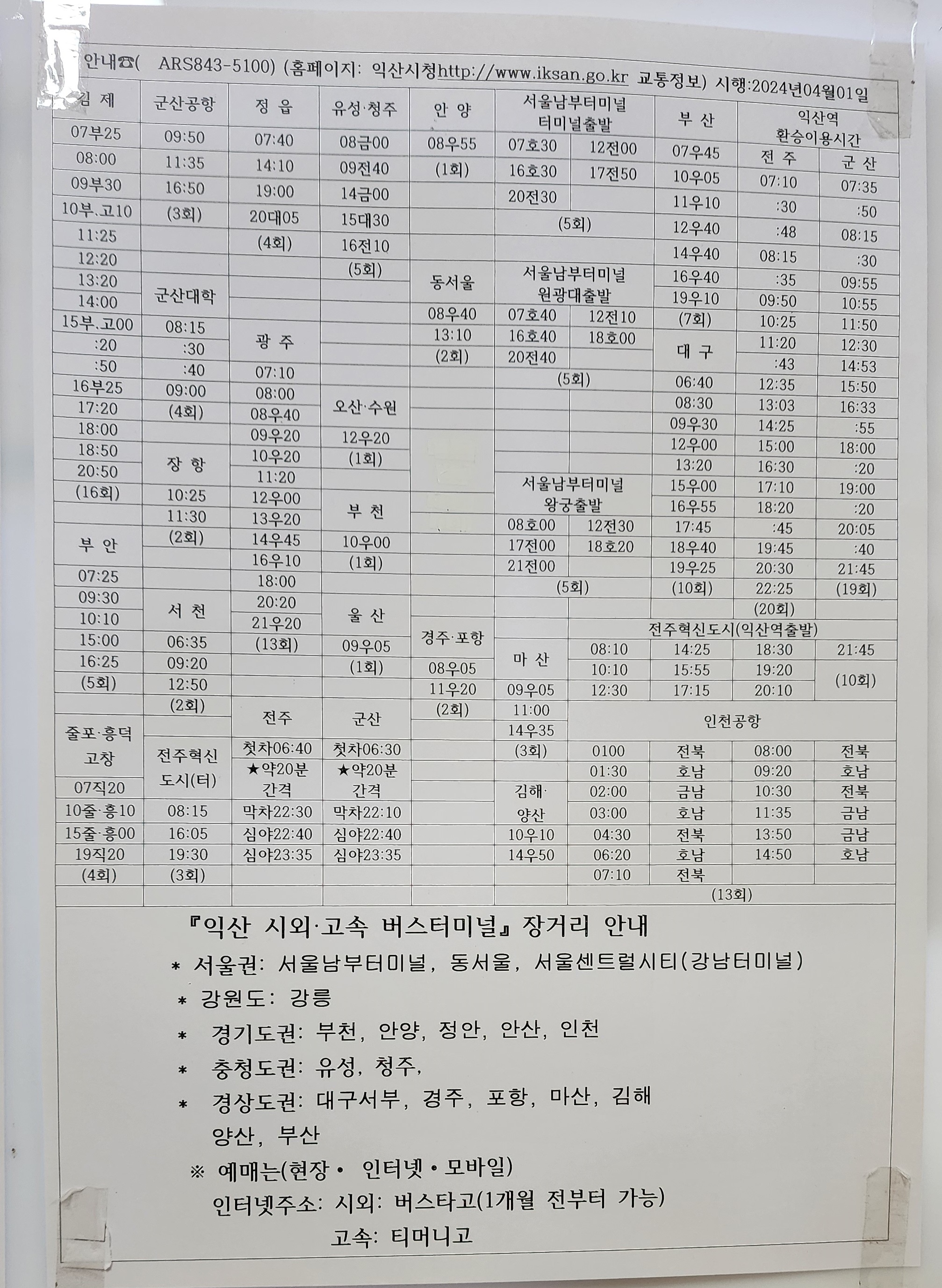 익산시외버스터미널 시간표