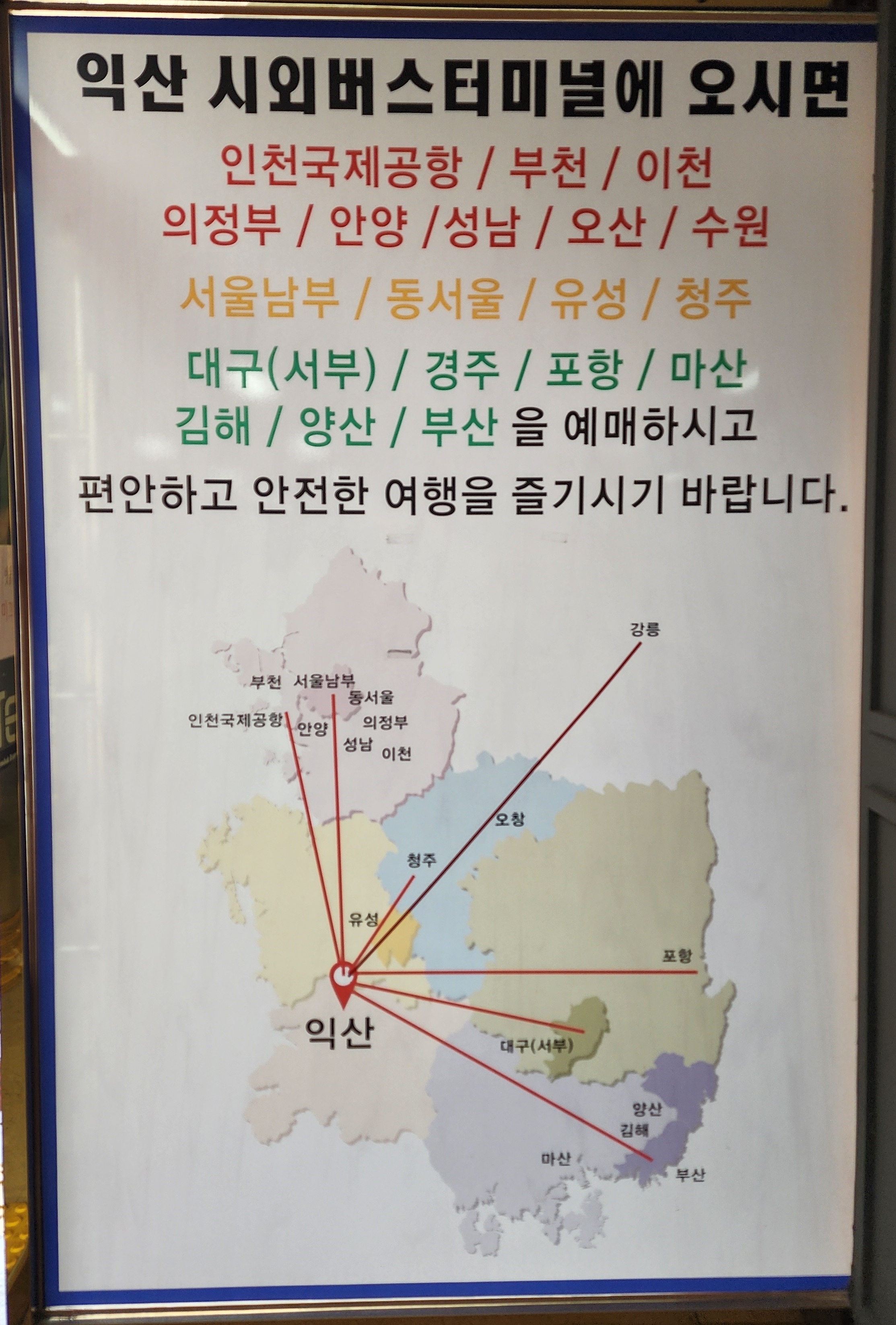 익산 출발 부산 노포동터미널, 서대구 서부정류장, 경주, 포항 방면.