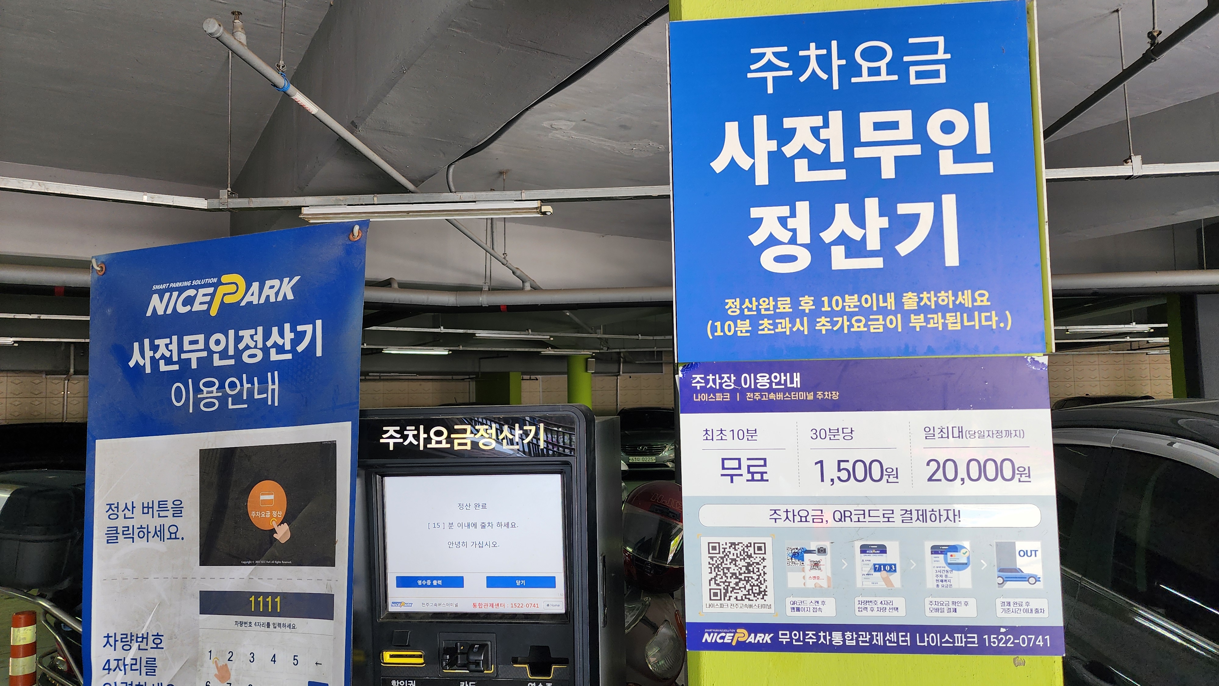 전주고속버스터미널 주차요금 최초 10분 무료, 30분당 1,500원, 일최대 20,000원