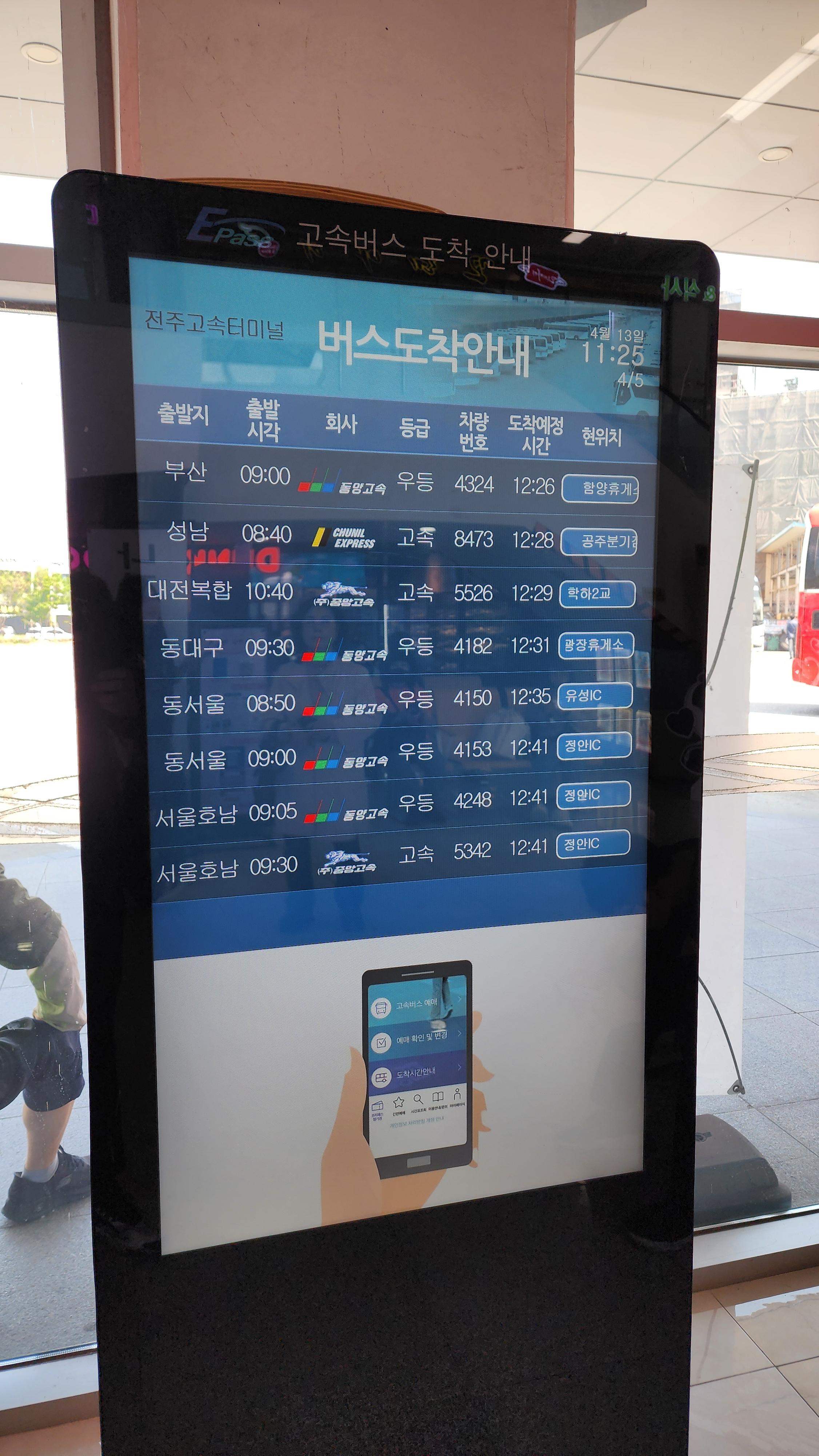 전주고속터미널 버스도착안내 모니터