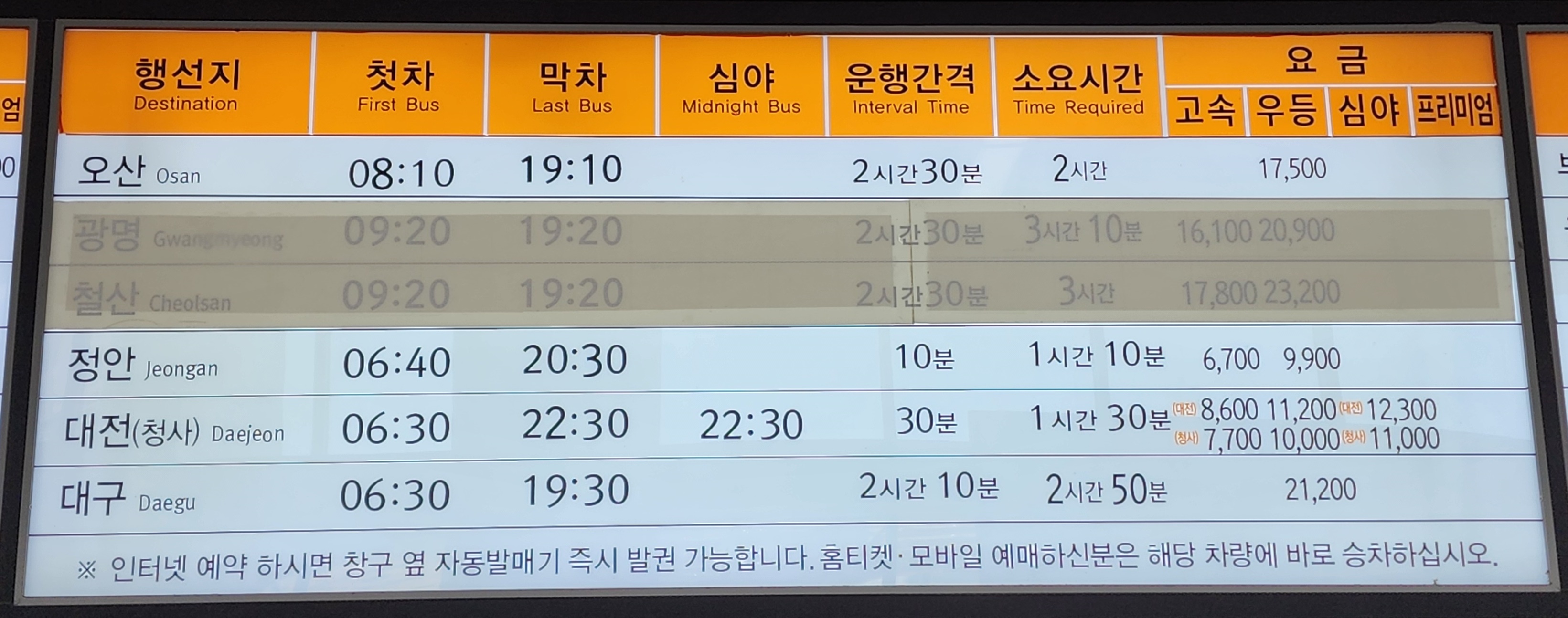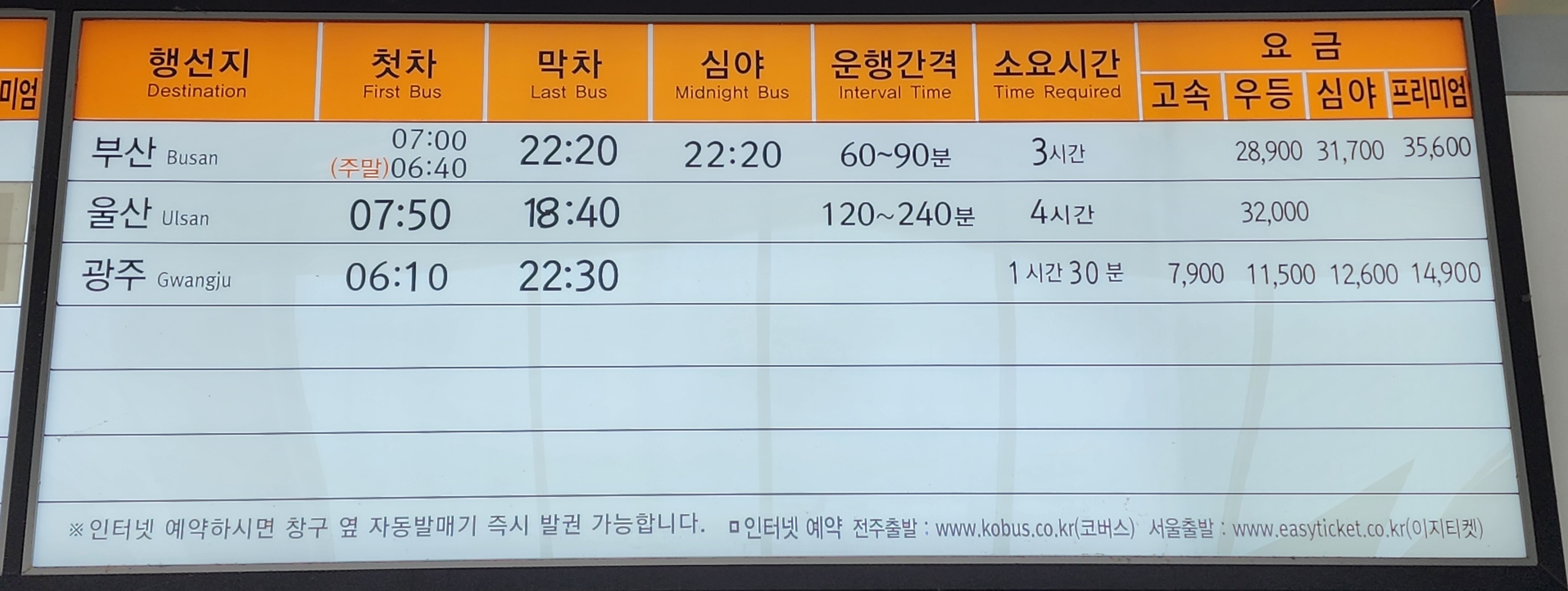 전주 출발 부산, 울산, 광주 방면.