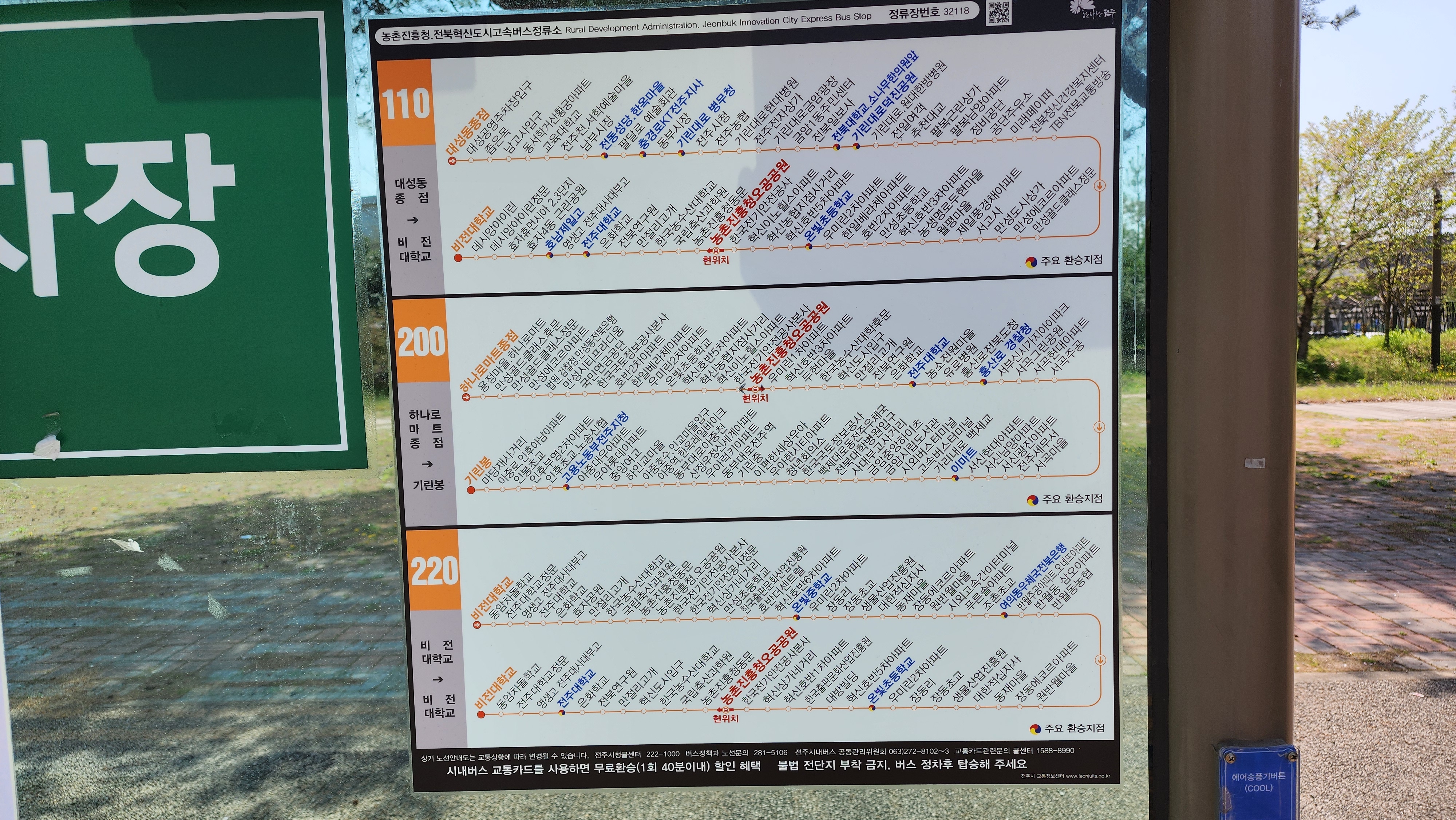 전북 완주혁신도시 시외버스 고속버스 정류장 시간표