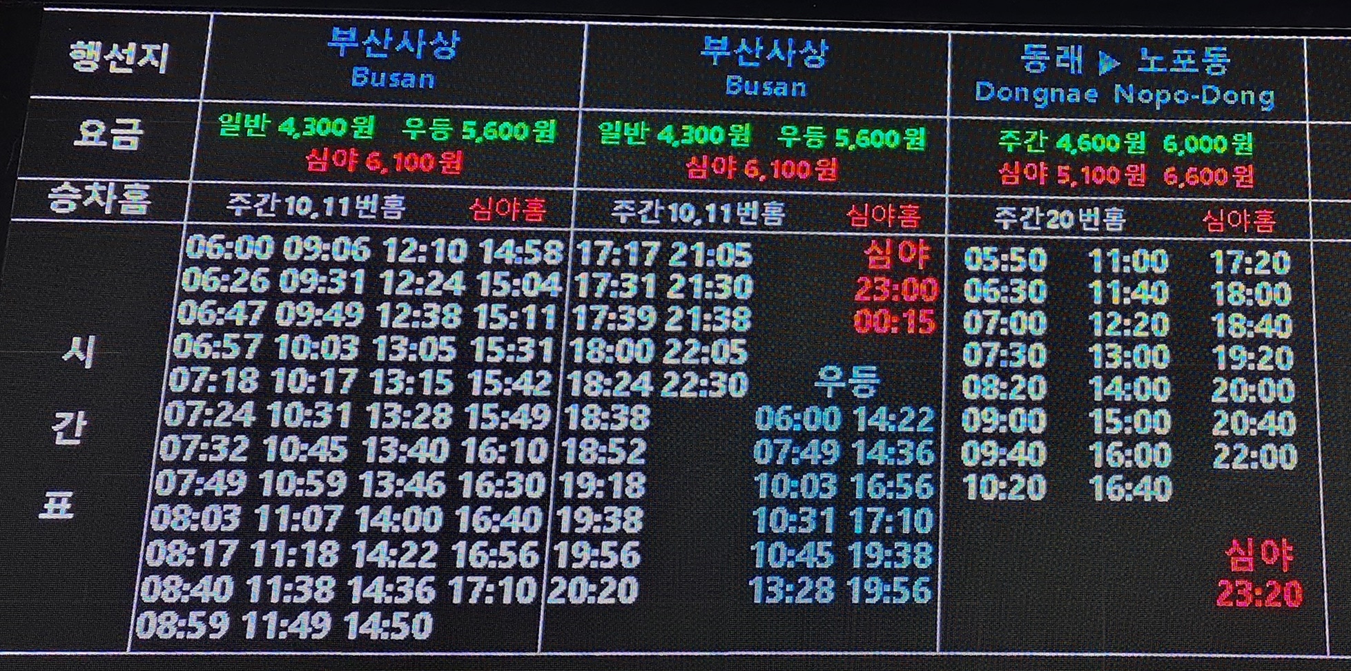 마산 출발 양산, 경주, 포항, 광양, 대구 방면.