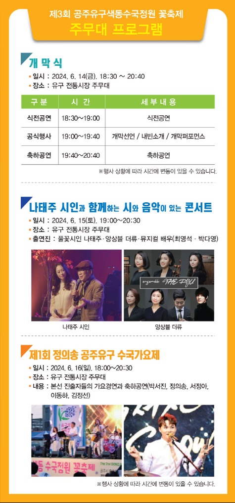 개막식 : 6.14(금) 19:00 유구전통시장 주무대