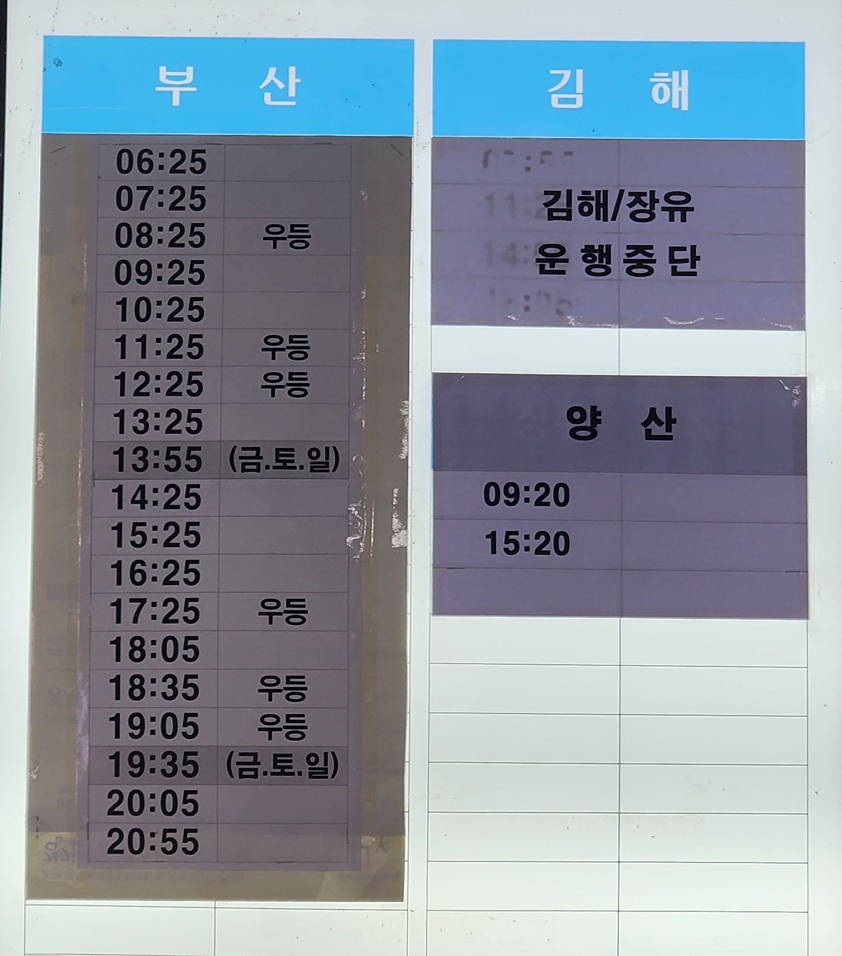 사천 출발 부산서부 운행 변경안내