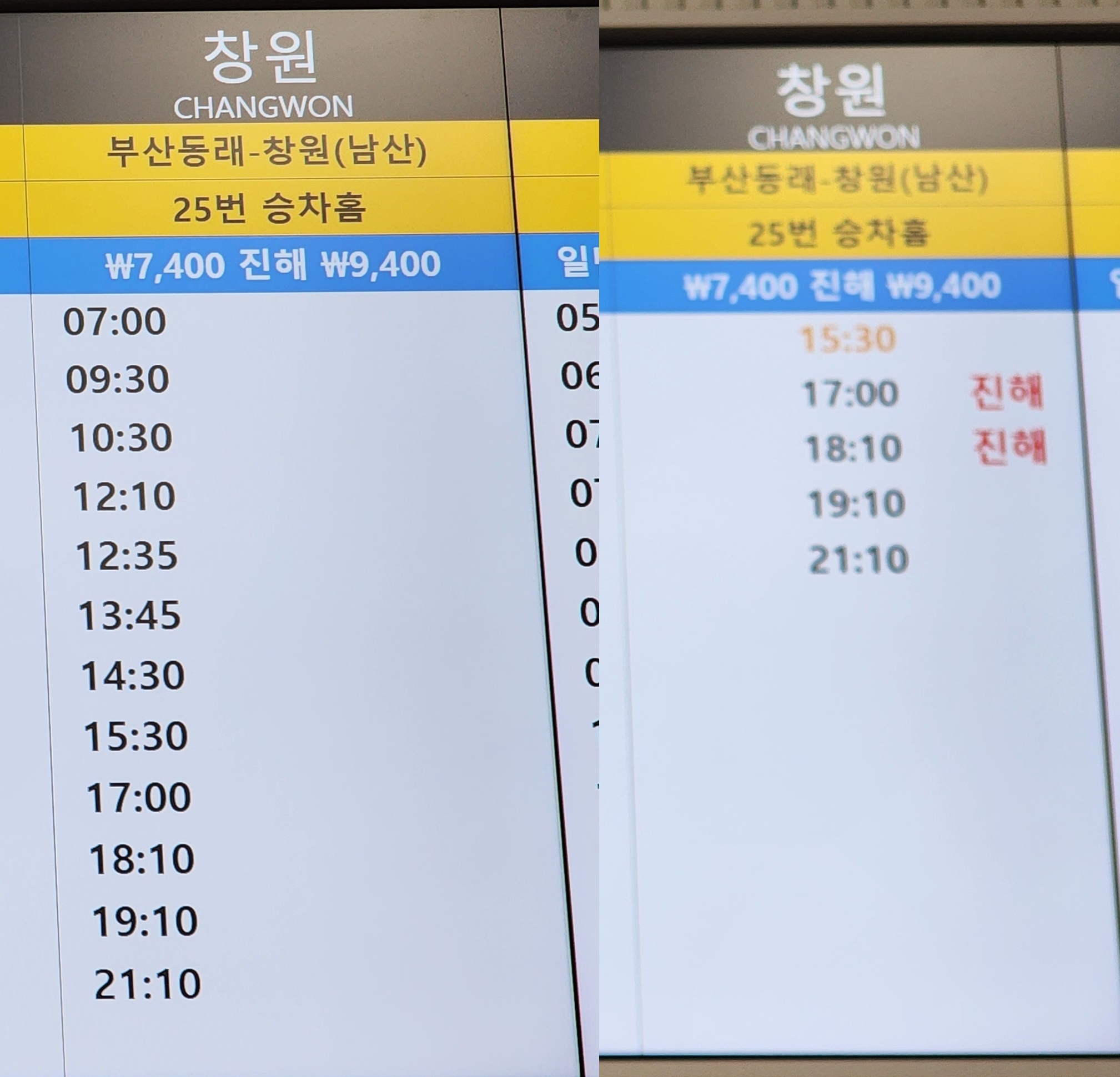 부산고속버스터미널시간표