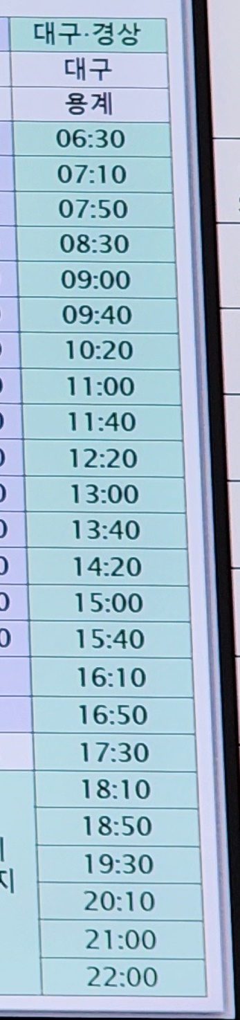 부산 출발 대구, 용계 방면.